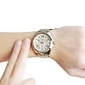Женские кварцевые часы Fossil Bannon AM4510. Корпус часов изготовлен из стали с IP-покрытиемIP-покрытиеМетод ионного напыления. Демонстрирует повышенную устойчивость к истиранию, окислению и химическим веществам. Под воздействием высокого давления и температуры около 1500°C молекулы металла надёжно соединяются с частицами корпуса часов.. Минеральное стеклоМинеральное стеклоМинеральное стекло представляет собой искусственно выращенный минерал кварца. Такое стекло отличается особой устойчивостью к повреждениям и царапинам. Уступает по некоторым качествам сапфировому стеклу. устойчивое к появлению царапин, обладающее высокой прозрачностью. Стрелки с люминесцентным покрытиемЛюминесцентное покрытиеПозволяет считывать показания времени в темноте. Производители наносят на стрелки, часовые индексы, безель или поверхность циферблата светонакопительный состав, дающий холодное свечение.. Водозащита: 100 метров, позволит плавать, нырять и заниматься другими водными видами спорта. Стальной браслет с IP-покрытиемIP-покрытиеМетод ионного напыления. Демонстрирует повышенную устойчивость к истиранию, окислению и химическим веществам. Под воздействием высокого давления и температуры около 1500°C молекулы металла надёжно соединяются с частицами корпуса часов. на раскладной застёжкеРаскладная застёжкаТакой тип застёжки используется только на браслетах из металла. Она никогда не раскрывается полностью, происходит разделение на 2 и более частей. Раскладывающая застёжка снизит вероятность потери часов к минимуму..