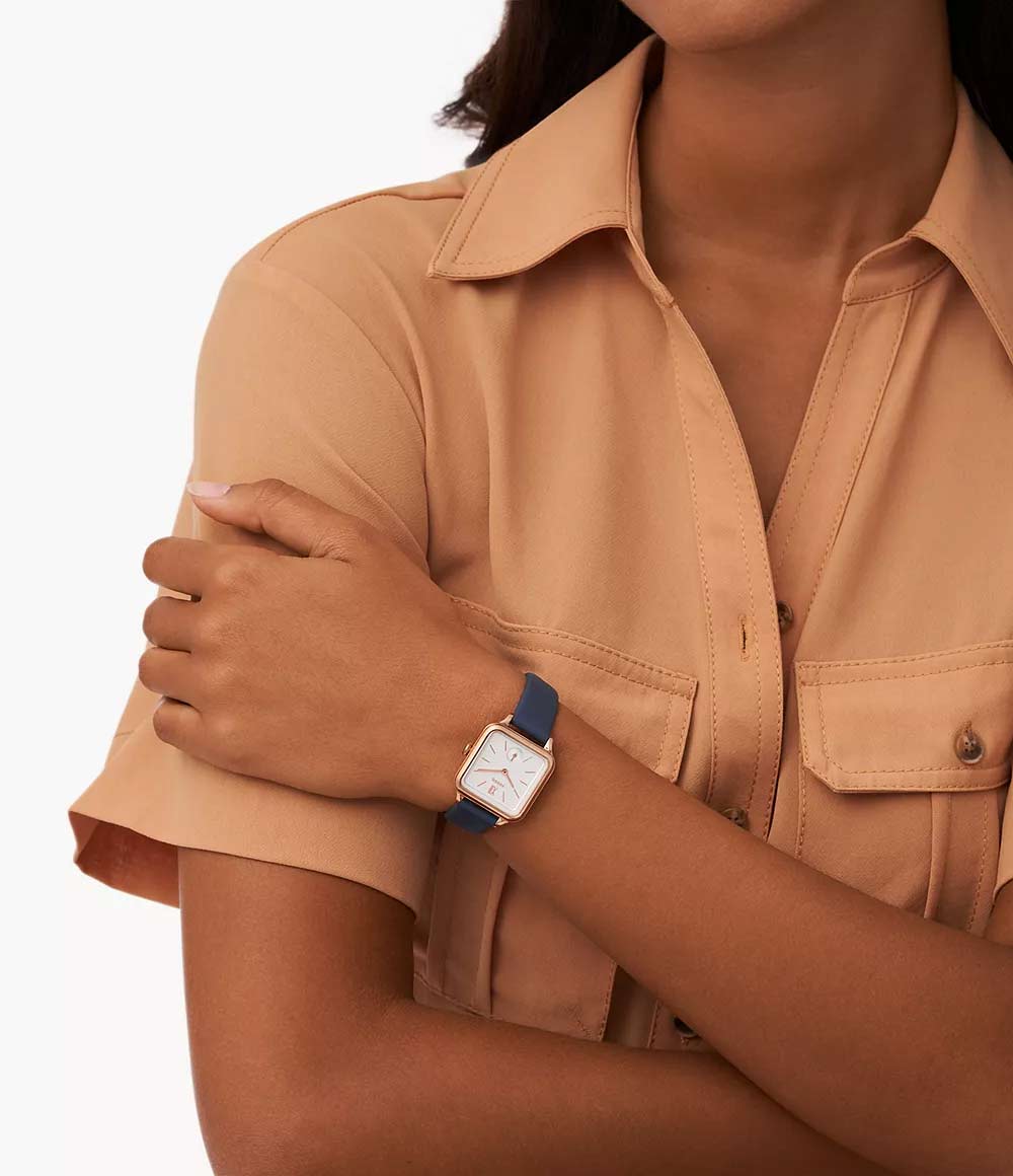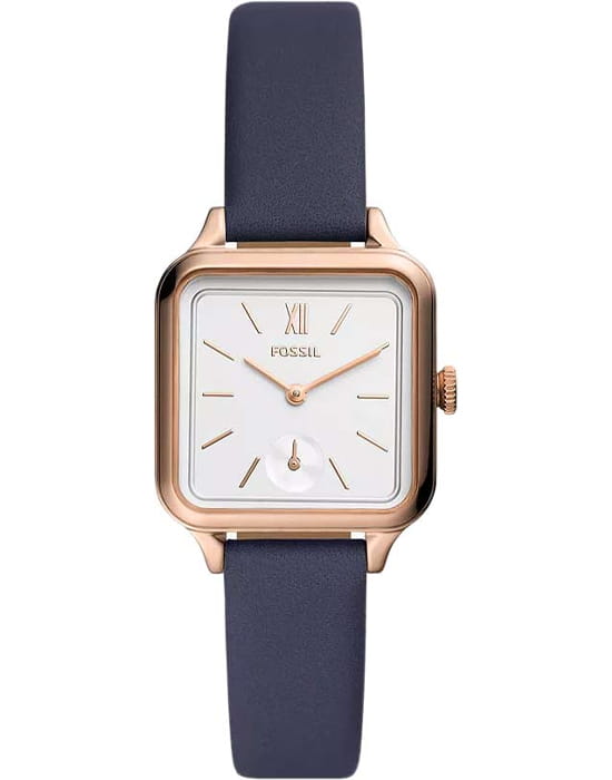 Женские наручные часы с минеральным стекломМинеральное стеклоМинеральное стекло представляет собой искусственно выращенный минерал кварца. Такое стекло отличается особой устойчивостью к повреждениям и царапинам. Уступает по некоторым качествам сапфировому стеклу. Fossil BQ3910, кварцевый механизм с высокой точностью. Класс водозащиты: 30 метров, позволит защитить корпус от случайных брызг или капель дождя. Кожаный ремешок на стандартной застёжке. Рифленая заводная головка. Корпус из стали с IP-покрытиемIP-покрытиеМетод ионного напыления. Демонстрирует повышенную устойчивость к истиранию, окислению и химическим веществам. Под воздействием высокого давления и температуры около 1500°C молекулы металла надёжно соединяются с частицами корпуса часов..