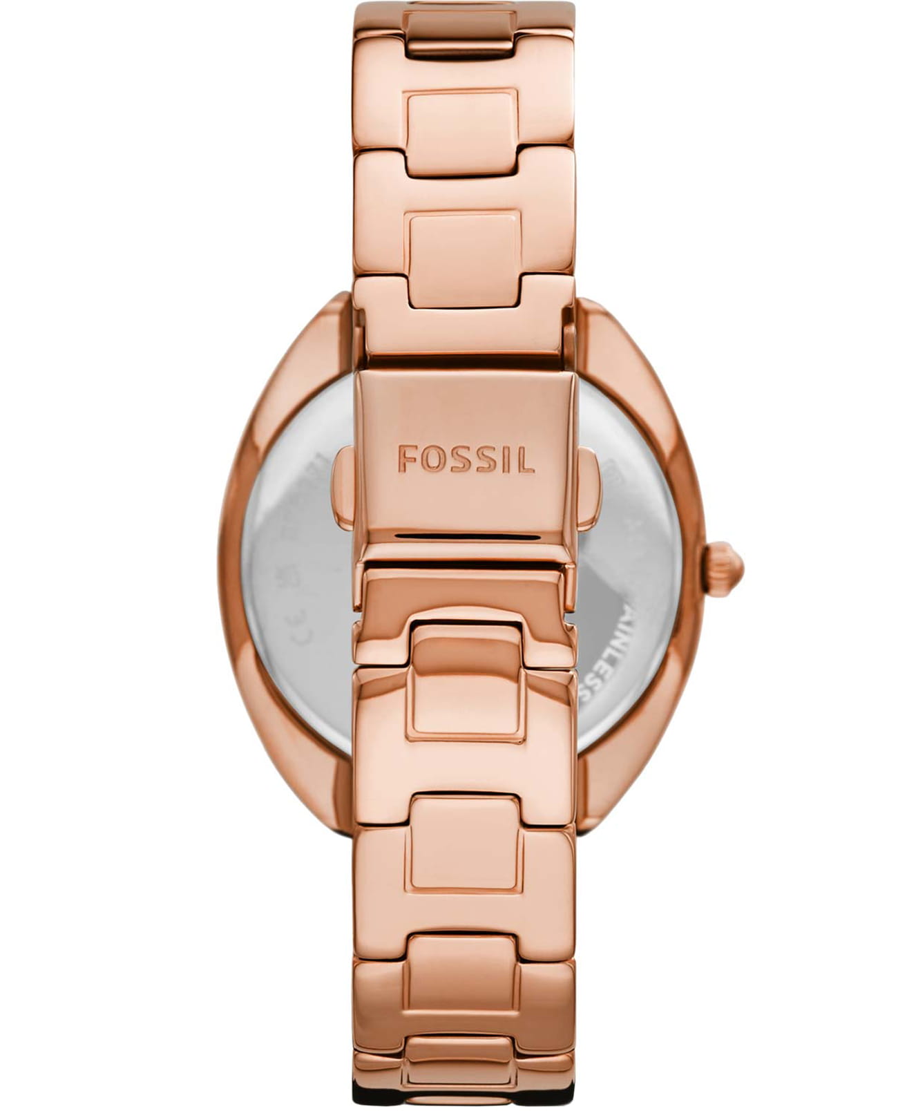 Fossil Gabby ES5070 - кварцевые часы с базовой трёхстрелочной индикацией и датой в положении 6 часов. Корпус 34 мм выполнен из стали с IP-покрытиемIP-покрытиеМетод ионного напыления. Демонстрирует повышенную устойчивость к истиранию, окислению и химическим веществам. Под воздействием высокого давления и температуры около 1500°C молекулы металла надёжно соединяются с частицами корпуса часов. под розовое золото. Водозащита 50WR подходит для повседневного контакта с водой. Розовый циферблат с комбинированной разметкой: римские цифры и точечные метки с кристаллами. Установлено минеральное стеклоМинеральное стеклоМинеральное стекло представляет собой искусственно выращенный минерал кварца. Такое стекло отличается особой устойчивостью к повреждениям и царапинам. Уступает по некоторым качествам сапфировому стеклу., устойчивое к мелким повреждениям. Стальной браслет с покрытием и системой быстрой замены, фиксируется на раскладной застёжкеРаскладная застёжкаТакой тип застёжки используется только на браслетах из металла. Она никогда не раскрывается полностью, происходит разделение на 2 и более частей. Раскладывающая застёжка снизит вероятность потери часов к минимуму..