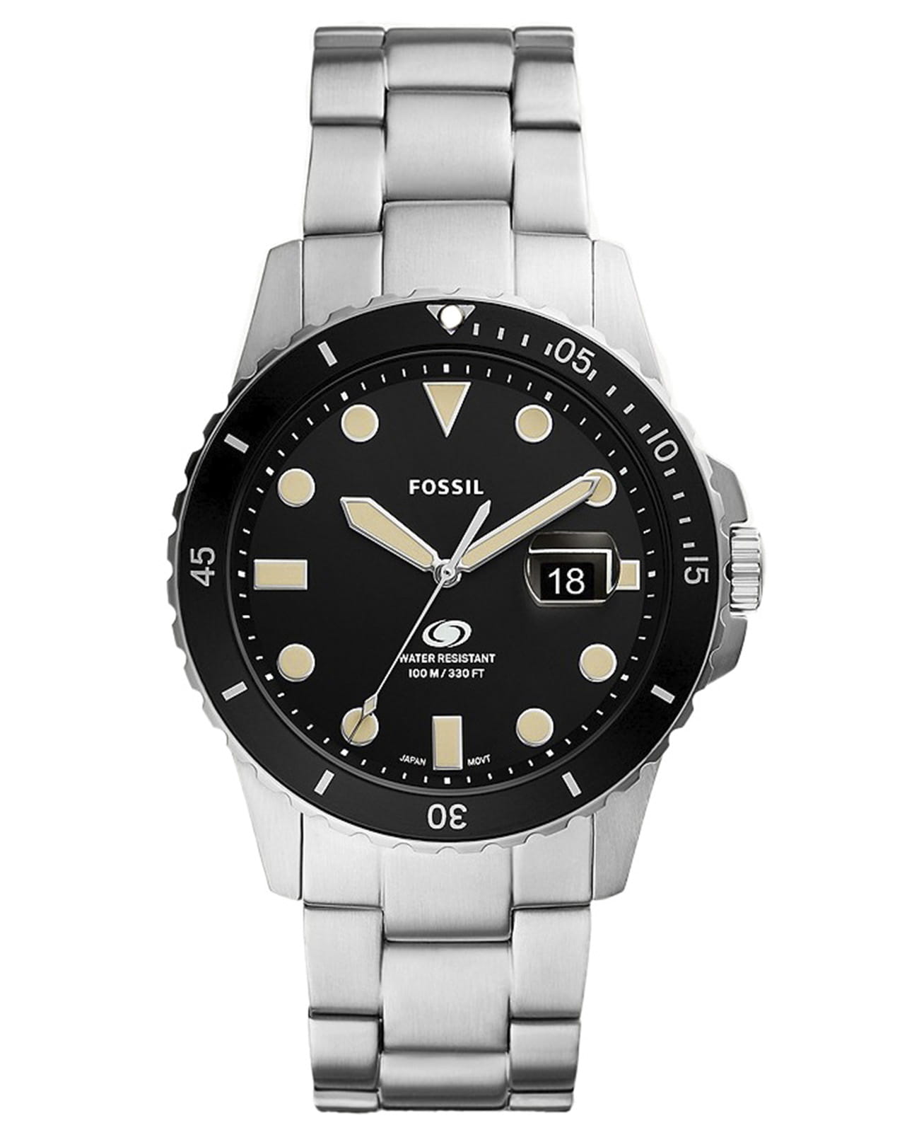Мужские наручные часы на стальном браслете Fossil Blue FS5951, кварцевый механизм с высокой точностью. Класс водозащиты: 100 метров, позволит плавать, нырять и заниматься другими водными видами спорта. Корпус часов изготовлен из стали с IP-покрытиемIP-покрытиеМетод ионного напыления. Демонстрирует повышенную устойчивость к истиранию, окислению и химическим веществам. Под воздействием высокого давления и температуры около 1500°C молекулы металла надёжно соединяются с частицами корпуса часов. черного цвета. Метки в виде точек на циферблате и окошко даты находится в положении 3 часа. Ремешок из стали серебристого цвета на раскладывающейся застёжкеРаскладная застёжкаТакой тип застёжки используется только на браслетах из металла. Она никогда не раскрывается полностью, происходит разделение на 2 и более частей. Раскладывающая застёжка снизит вероятность потери часов к минимуму..