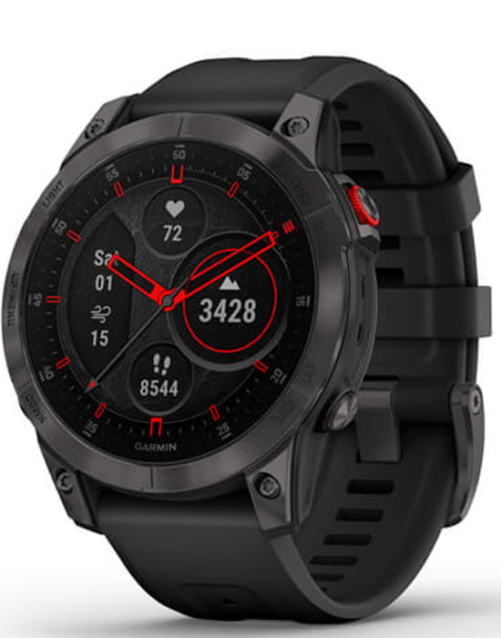 Умные многофункциональные мужские часы Garmin Epix (Gen 2) 010-02582-11, электронный механизм с высокой точностью. Класс водозащиты: 100 метров, позволит плавать, нырять и заниматься другими водными видами спорта. Стальной корпус. Циферблат с сапфировым стекломСапфировое стеклоПрочный и надёжный материал из кристалла сапфира синтетического происхождения, характеризующийся особой твёрдостью и устойчивостью к царапинам и повреждениям.. Экран с светодиодной подсветкойСветодиодная подсветкаСветодиодная или LED-подсветка обеспечивает появление яркого холодного свечения за счёт LED-элементов - маленьких лампочек. Они потребляют минимальное количество энергии, чаще всего можно встретить 1 светодиод, в нижней части циферблата.. Силиконовый ремешок на стандартной застёжке. Безель из титана с DLC-покрытиемDLC-покрытиеDiamond like carbon - одно из лучших видов покрытия, представляющее собой углерод с алмазными свойствами. На поверхность материала наносятся распавшиеся молекулы углерода, превращающиеся в плёнку из алмазоподобных связей, которая перенимает твёрдость алмаза.