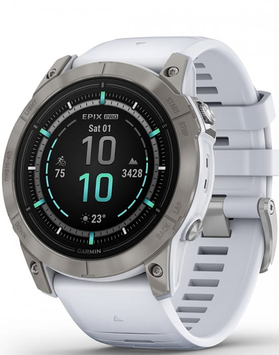 Умные многофункциональные мужские часы Garmin Epix Pro (Gen 2) Sapphire Edition 010-02804-11, электронный механизм с высокой точностью. Класс водозащиты: 100 метров, позволит плавать, нырять и заниматься другими водными видами спорта. Стальной корпус. Циферблат с сапфировым стекломСапфировое стеклоПрочный и надёжный материал из кристалла сапфира синтетического происхождения, характеризующийся особой твёрдостью и устойчивостью к царапинам и повреждениям.. Экран с светодиодной подсветкойСветодиодная подсветкаСветодиодная или LED-подсветка обеспечивает появление яркого холодного свечения за счёт LED-элементов - маленьких лампочек. Они потребляют минимальное количество энергии, чаще всего можно встретить 1 светодиод, в нижней части циферблата.. Силиконовый ремешок на стандартной застёжке. Безель из титана с DLC-покрытиемDLC-покрытиеDiamond like carbon - одно из лучших видов покрытия, представляющее собой углерод с алмазными свойствами. На поверхность материала наносятся распавшиеся молекулы углерода, превращающиеся в плёнку из алмазоподобных связей, которая перенимает твёрдость алмаза.