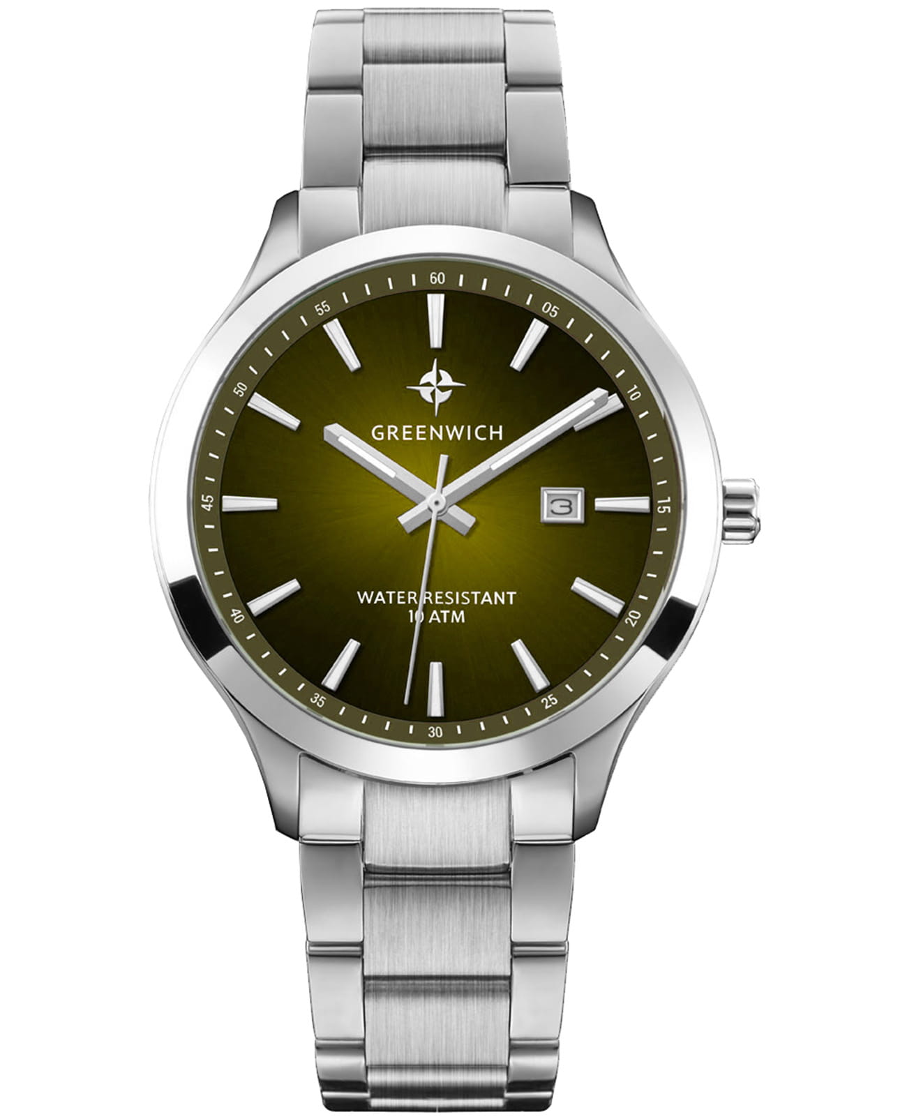Мужские наручные часы Greenwich Helm GW 041.10.30 представляют собой классический вариант для повседневной носки. Циферблат украшается брендовым логотипом, изображающим Розу Ветров. Эмблема мореплавательского духа символизирует удачу, стремление достигнуть поставленной цели. Часы характеризуются традиционными формами, лаконичным исполнением, что делает модель элегантным дополнением к деловому костюму. Надёжный корпус из нержавеющей стали спасает японский механизм от повреждений и ударов. Минеральное стеклоМинеральное стеклоМинеральное стекло представляет собой искусственно выращенный минерал кварца. Такое стекло отличается особой устойчивостью к повреждениям и царапинам. Уступает по некоторым качествам сапфировому стеклу. отличается устойчивостью к образованию царапин на поверхности. Стальной браслет на раскладной застёжкеРаскладная застёжкаТакой тип застёжки используется только на браслетах из металла. Она никогда не раскрывается полностью, происходит разделение на 2 и более частей. Раскладывающая застёжка снизит вероятность потери часов к минимуму. с фиксатором. Стрелки и метки с люминесцентным покрытиемЛюминесцентное покрытиеПозволяет считывать показания времени в темноте. Производители наносят на стрелки, часовые индексы, безель или поверхность циферблата светонакопительный состав, дающий холодное свечение.. Окошко даты находится в положении 3 часа. Класс водозащиты: 100 метров, позволит плавать, нырять и заниматься другими водными видами спорта.