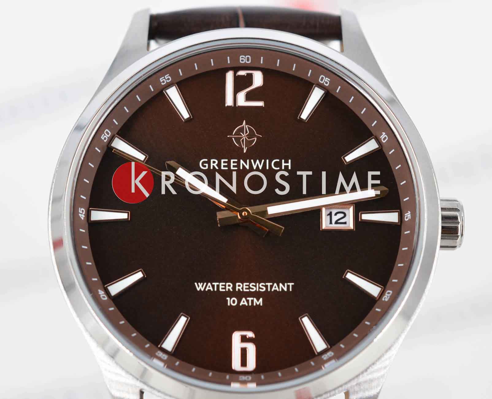 Мужские часы Greenwich Octopus GW 051.12.30, кварцевый механизм с высокой точностью. Минеральное стеклоМинеральное стеклоМинеральное стекло представляет собой искусственно выращенный минерал кварца. Такое стекло отличается особой устойчивостью к повреждениям и царапинам. Уступает по некоторым качествам сапфировому стеклу. устойчивое к появлению царапин, обладающее высокой прозрачностью. Корпус изготовлен из нержавеющей стали. Окошко даты находится в положении 3 часа. Стрелки с люминесцентным покрытиемЛюминесцентное покрытиеПозволяет считывать показания времени в темноте. Производители наносят на стрелки, часовые индексы, безель или поверхность циферблата светонакопительный состав, дающий холодное свечение.. Класс водозащиты: 100 метров, позволит плавать, нырять и заниматься другими водными видами спорта. Кожаный ремешок на стандартной застежке.