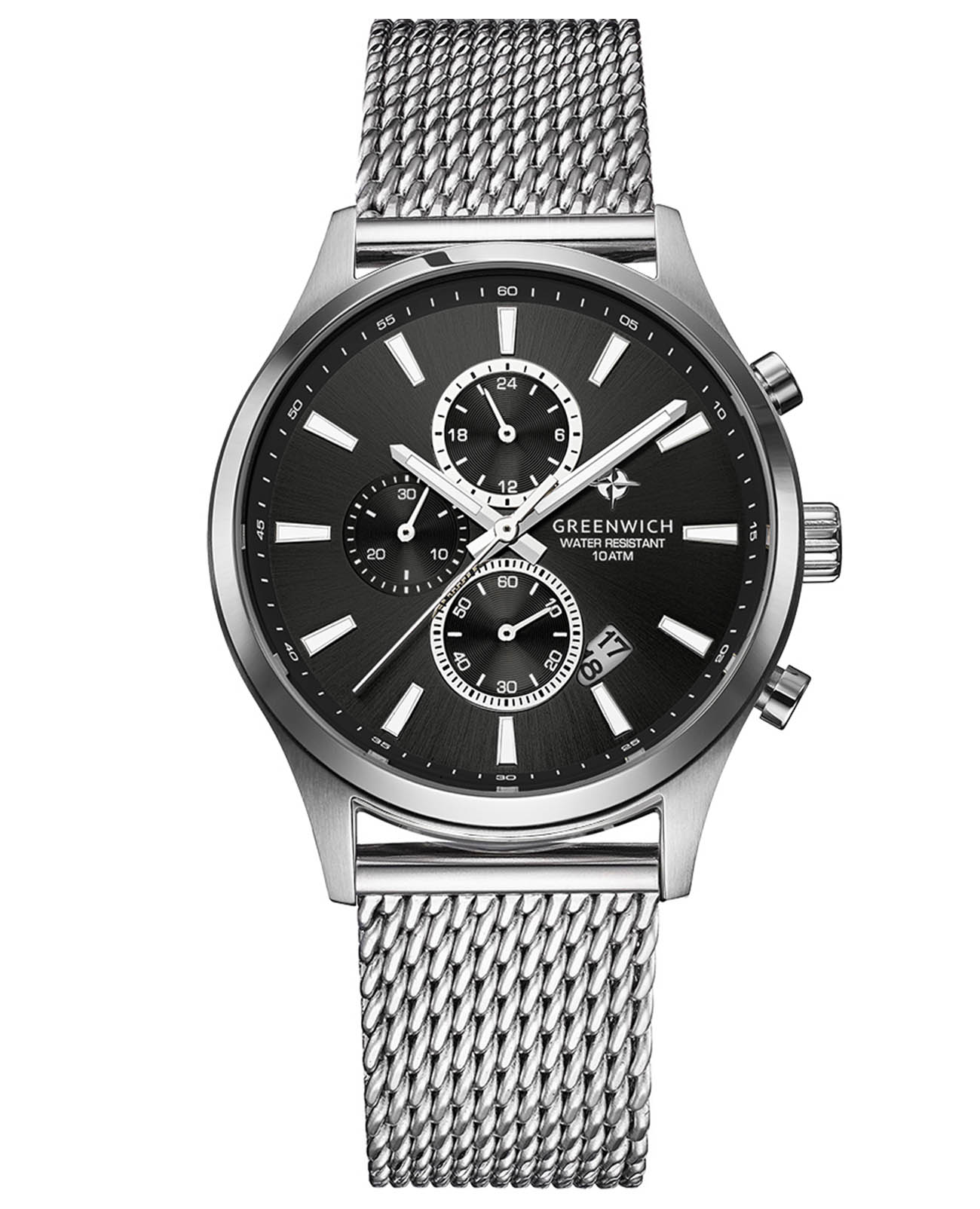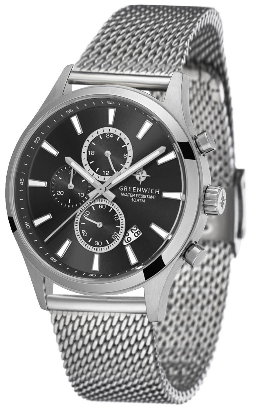 Мужские наручные часы-хронографХронографФункция позволяет измерять отрезки времени с особой точностью: часы, минуты, секунды. Верным признаком хронографа является наличие на циферблате 3 дополнительных окошек-счётчиков. Greenwich GW 053.19.31 представляют собой классический вариант для повседневной носки. Циферблат украшается брендовым логотипом, изображающим Розу Ветров. Эмблема мореплавательского духа символизирует удачу, стремление достигнуть поставленной цели. Надёжный корпус из нержавеющей стали спасает японский механизм от повреждений и ударов. Минеральное стеклоМинеральное стеклоМинеральное стекло представляет собой искусственно выращенный минерал кварца. Такое стекло отличается особой устойчивостью к повреждениям и царапинам. Уступает по некоторым качествам сапфировому стеклу. отличается устойчивостью к образованию царапин на поверхности.