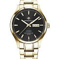 Мужские часы Greenwich Good Luck GW 054.20.31, механический механизм (автоматический калибр) с высокой точностью. Классический круглый стальной корпус с PVD-покрытиемPVDУльтратонкое покрытие наносится в технике вакуумного напыления, сочетает в себе нитрид титана особой прочности со слоем золота или оксида хрома. Несёт в себе декоративную или защитную функцию., защищенный минеральным стекломМинеральное стеклоМинеральное стекло представляет собой искусственно выращенный минерал кварца. Такое стекло отличается особой устойчивостью к повреждениям и царапинам. Уступает по некоторым качествам сапфировому стеклу.. Стрелки и метки с люминесцентным покрытиемЛюминесцентное покрытиеПозволяет считывать показания времени в темноте. Производители наносят на стрелки, часовые индексы, безель или поверхность циферблата светонакопительный состав, дающий холодное свечение.. Стальной браслет на раскладной застёжкеРаскладная застёжкаТакой тип застёжки используется только на браслетах из металла. Она никогда не раскрывается полностью, происходит разделение на 2 и более частей. Раскладывающая застёжка снизит вероятность потери часов к минимуму.. Класс водозащиты: 100 метров, позволит плавать, нырять и заниматься другими водными видами спорта. Окошко даты и дня недели находится в положении 3 часа.