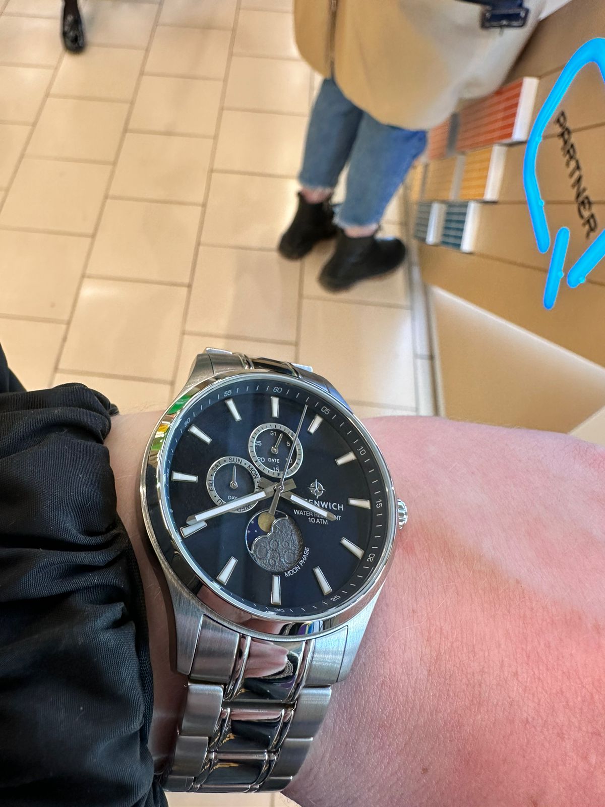 Доставили вовремя. очень красивые стильные часы, особенно циферблат. Лунный календарь только украшает его!