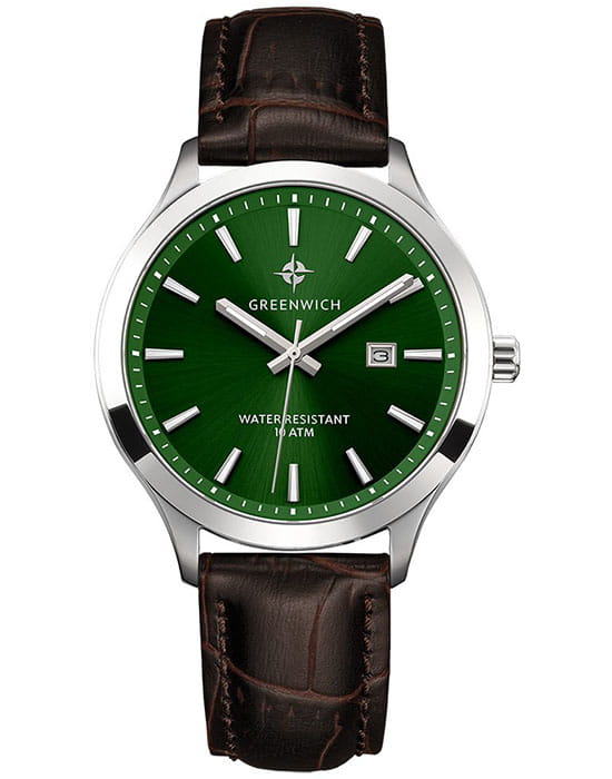 Мужские наручные часы Greenwich GW 041.12.38 представляют собой классический вариант для повседневной носки. Циферблат украшается брендовым логотипом, изображающим Розу Ветров. Эмблема мореплавательского духа символизирует удачу, стремление достигнуть поставленной цели. Часы характеризуются традиционными формами, лаконичным исполнением, что делает модель элегантным дополнением к деловому костюму. Надёжный корпус из нержавеющей стали спасает японский механизм от повреждений и ударов. Минеральное стекло отличается устойчивостью к образованию царапин на поверхности.