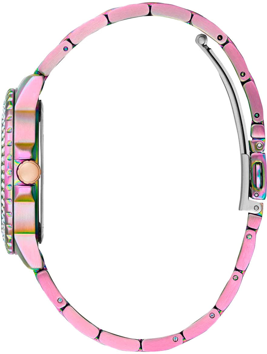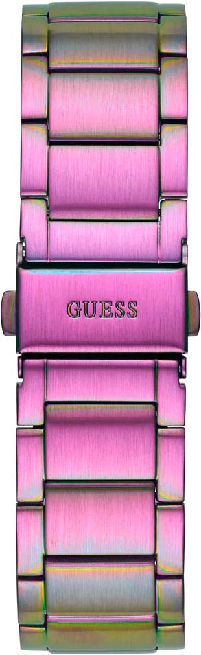 Женские наручные часы Guess Sport Steel GW0410L4 с минеральным стекломМинеральное стеклоМинеральное стекло представляет собой искусственно выращенный минерал кварца. Такое стекло отличается особой устойчивостью к повреждениям и царапинам. Уступает по некоторым качествам сапфировому стеклу., кварцевый механизм с высокой точностью. 12-ти и 24-х часовой формат времени, число и день недели вынесены на отдельные циферблаты. Метки в виде точек. Класс водозащиты: 30 метров, позволит защитить корпус от случайных брызг или капель дождя. Корпус часов изготовлен из стали с IP-покрытиемIP-покрытиеМетод ионного напыления. Демонстрирует повышенную устойчивость к истиранию, окислению и химическим веществам. Под воздействием высокого давления и температуры около 1500°C молекулы металла надёжно соединяются с частицами корпуса часов.. Браслет с раскладной застёжкойРаскладная застёжкаТакой тип застёжки используется только на браслетах из металла. Она никогда не раскрывается полностью, происходит разделение на 2 и более частей. Раскладывающая застёжка снизит вероятность потери часов к минимуму..