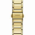 Женские наручные часы Guess Sport Steel GW0552L2 с минеральным стекломМинеральное стеклоМинеральное стекло представляет собой искусственно выращенный минерал кварца. Такое стекло отличается особой устойчивостью к повреждениям и царапинам. Уступает по некоторым качествам сапфировому стеклу., кварцевый механизм с высокой точностью. 24-х часовой формат времени, число и день недели отображаются на отдельных циферблатах. Стрелки и метки с люминесцентным покрытиемЛюминесцентное покрытиеПозволяет считывать показания времени в темноте. Производители наносят на стрелки, часовые индексы, безель или поверхность циферблата светонакопительный состав, дающий холодное свечение.. Класс водозащиты: 50 метров, позволит защитить корпус от случайных брызг или капель дождя. Корпус часов и браслет изготовлены из стали с IP-покрытиемIP-покрытиеМетод ионного напыления. Демонстрирует повышенную устойчивость к истиранию, окислению и химическим веществам. Под воздействием высокого давления и температуры около 1500°C молекулы металла надёжно соединяются с частицами корпуса часов.. БезельБезельВнешний ободок, закрепляющий стекло. В спортивных часах так называется поворотное кольцо с делениями на циферблате, выполняет роль таймера – замеряет отрезки времени на шкале. Неподвижный безель – элемент декора. Однонаправленно вращающийся безель на дайверских часах позволяет фиксировать моменты погружения и выныривания на поверхность. инкрустирован кристаллами. Браслет с раскладной застёжкойРаскладная застёжкаТакой тип застёжки используется только на браслетах из металла. Она никогда не раскрывается полностью, происходит разделение на 2 и более частей. Раскладывающая застёжка снизит вероятность потери часов к минимуму..