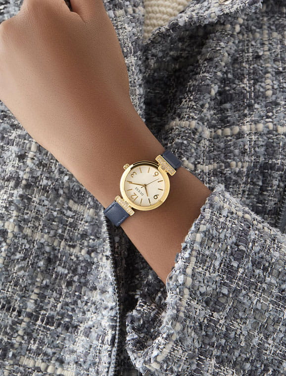 Часы Guess  Dress Array GW0614L5 представляют собой элегантное сочетание стиля и технологии. Оснащенные кварцевым механизмом, они обеспечивают точность и надежность. Корпус выполнен из стали с IP-покрытиемIP-покрытиеМетод ионного напыления. Демонстрирует повышенную устойчивость к истиранию, окислению и химическим веществам. Под воздействием высокого давления и температуры около 1500°C молекулы металла надёжно соединяются с частицами корпуса часов., что придаёт модели прочность и изысканный внешний вид. Белый циферблат украшен гильошированным узором в центральной части, а метки выполнены в виде штрихов и арабских цифр, что обеспечивает легкость восприятия времени. Круглый корпус декорирован кристаллами, добавляя блеск и шарм. Минеральное стеклоМинеральное стеклоМинеральное стекло представляет собой искусственно выращенный минерал кварца. Такое стекло отличается особой устойчивостью к повреждениям и царапинам. Уступает по некоторым качествам сапфировому стеклу. защищает циферблат, а рифленая заводная головка облегчает настройку времени. Кожаный ремешок cbytuj цвета с классической застежкой обеспечивает комфортное ношение на протяжении всего дня. Водозащита 30WR защищает часы от брызг и дождя, делая их практичными для повседневного использования. Габариты часов включают диаметр 28 мм, толщину 7 мм, ширину ремешка 10 мм и длину ремешка 185 мм, что делает их отличным аксессуаром для стильного образа.