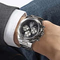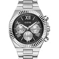 Часы Guess GW0703G1 представляют собой практичный и стильный аксессуар, который отлично дополнит ваш повседневный образ. Эти мужские часы оснащены надежным кварцевым механизмом и выполнены в прочном стальном корпусе. Диаметр корпуса составляет 44 мм с рифленым безелемБезельВнешний ободок, закрепляющий стекло. В спортивных часах так называется поворотное кольцо с делениями на циферблате, выполняет роль таймера – замеряет отрезки времени на шкале. Неподвижный безель – элемент декора. Однонаправленно вращающийся безель на дайверских часах позволяет фиксировать моменты погружения и выныривания на поверхность., это придает им стильный и современный вид. Черный циферблат, выполненный по технологии Sunray, создает эффект солнечных лучей и добавляет глубину дизайну. Гильошированный узор, метки в виде штрихов и римских цифр подчеркивают элегантность модели. Часы также оснащены функцией отображения времени в 12-ти и 24-х часовом формате, а также отдельными циферблатами для отображения даты и дня недели, что делает их особенно удобными для повседневного использования. Люминесцентное покрытиеЛюминесцентное покрытиеПозволяет считывать показания времени в темноте. Производители наносят на стрелки, часовые индексы, безель или поверхность циферблата светонакопительный состав, дающий холодное свечение. на стрелках обеспечивает отличную видимость в темноте. Рифленая заводная головка с защитой обеспечивает дополнительное удобство и надежность. Стальной браслет длиной оснащен раскладной застежкойРаскладная застёжкаТакой тип застёжки используется только на браслетах из металла. Она никогда не раскрывается полностью, происходит разделение на 2 и более частей. Раскладывающая застёжка снизит вероятность потери часов к минимуму., что гарантирует комфорт и безопасность при носке. Минеральное стеклоМинеральное стеклоМинеральное стекло представляет собой искусственно выращенный минерал кварца. Такое стекло отличается особой устойчивостью к повреждениям и царапинам. Уступает по некоторым качествам сапфировому стеклу. защищает циферблат от царапин и других повреждений, а водозащита 50WR позволяет не беспокоиться о попадании воды при случайном контакте. Эти часы не только практичны, но и станут стильным дополнением вашего гардероба, подчеркивая вашу уверенность и внимание к деталям.