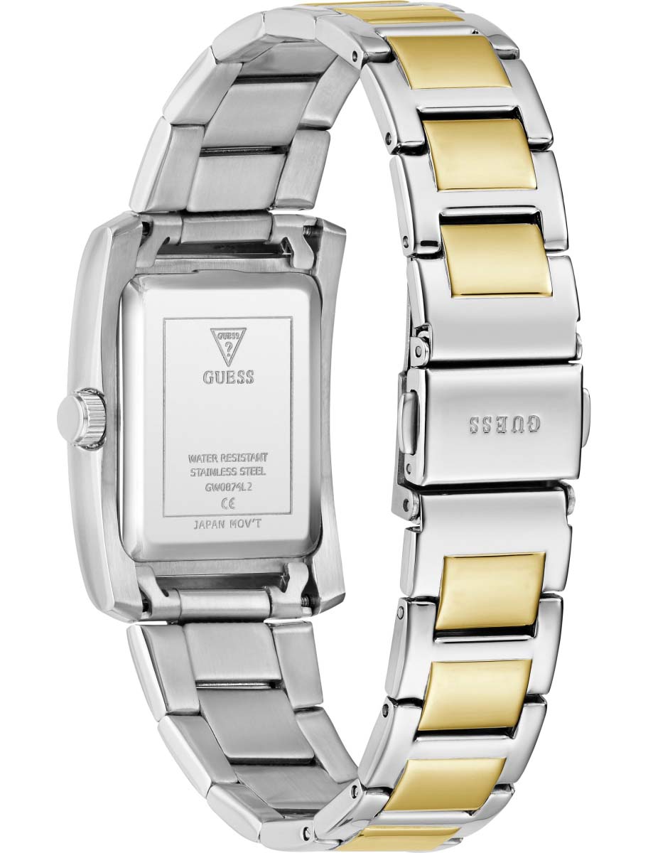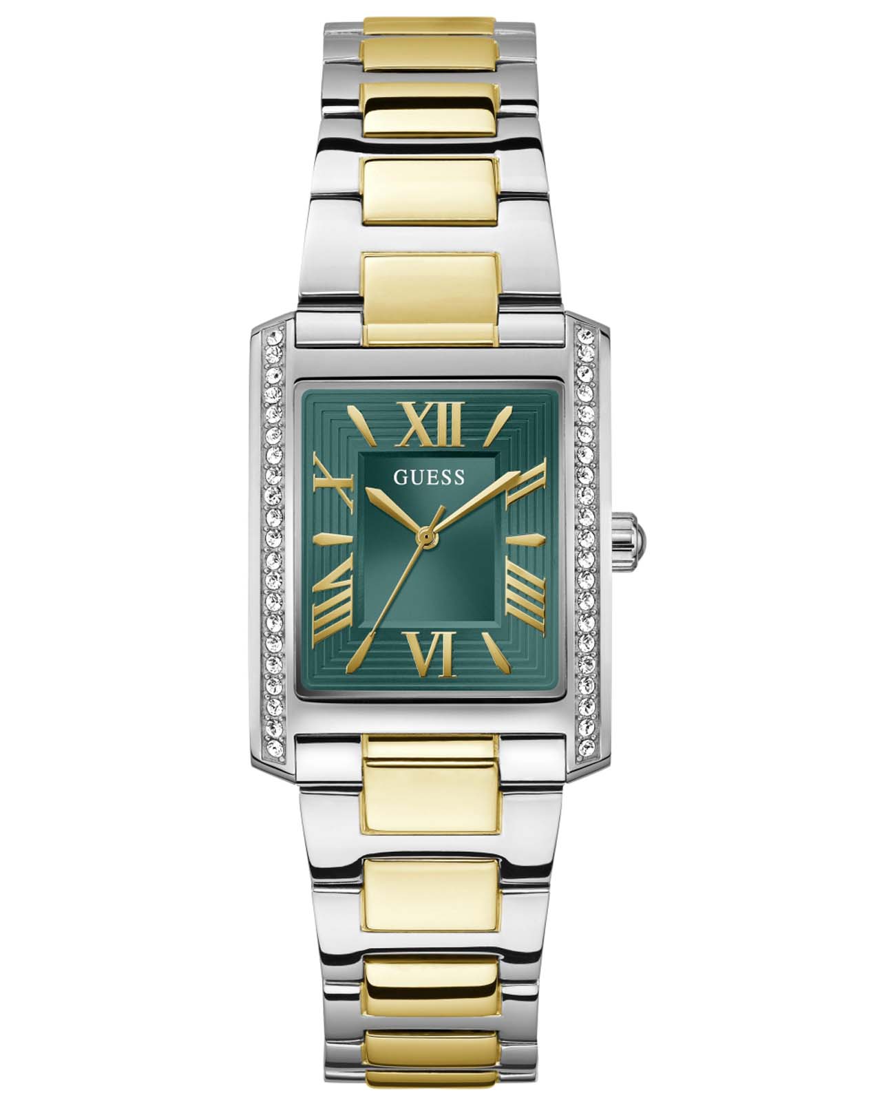 Изысканные женские наручные часы Guess GW0874L2, которые воплощают в себе элегантность и современный стиль. Эти часы оснащены надежным кварцевым механизмом, что обеспечивает их точность и долговечность. Корпус, выполненный из высококачественной стали, имеет прямоугольную форму и украшен роскошными кристаллами, придающими изделию особый блеск и шик. Зеленый циферблат с эффектом солнечных лучей выглядит поистине утонченно, а часовые метки в виде штрихов и римских цифр добавляют классическую нотку в общий дизайн. Рифленая заводная головка не только удобна в использовании, но и гармонично вписывается в общий облик часов. Стальной браслет с IP-покрытиемIP-покрытиеМетод ионного напыления. Демонстрирует повышенную устойчивость к истиранию, окислению и химическим веществам. Под воздействием высокого давления и температуры около 1500°C молекулы металла надёжно соединяются с частицами корпуса часов. и с раскладной застежкойРаскладная застёжкаТакой тип застёжки используется только на браслетах из металла. Она никогда не раскрывается полностью, происходит разделение на 2 и более частей. Раскладывающая застёжка снизит вероятность потери часов к минимуму. обеспечивает надежную фиксацию на запястье и комфорт при носке. Часы обладают водозащитой 30WR, что обеспечивает им защиту от брызг и дождя, а минеральное стеклоМинеральное стеклоМинеральное стекло представляет собой искусственно выращенный минерал кварца. Такое стекло отличается особой устойчивостью к повреждениям и царапинам. Уступает по некоторым качествам сапфировому стеклу. предохраняет циферблат от царапин и повреждений. Эти часы станут прекрасным дополнением к вашему образу, подчеркивая вашу индивидуальность и стиль.