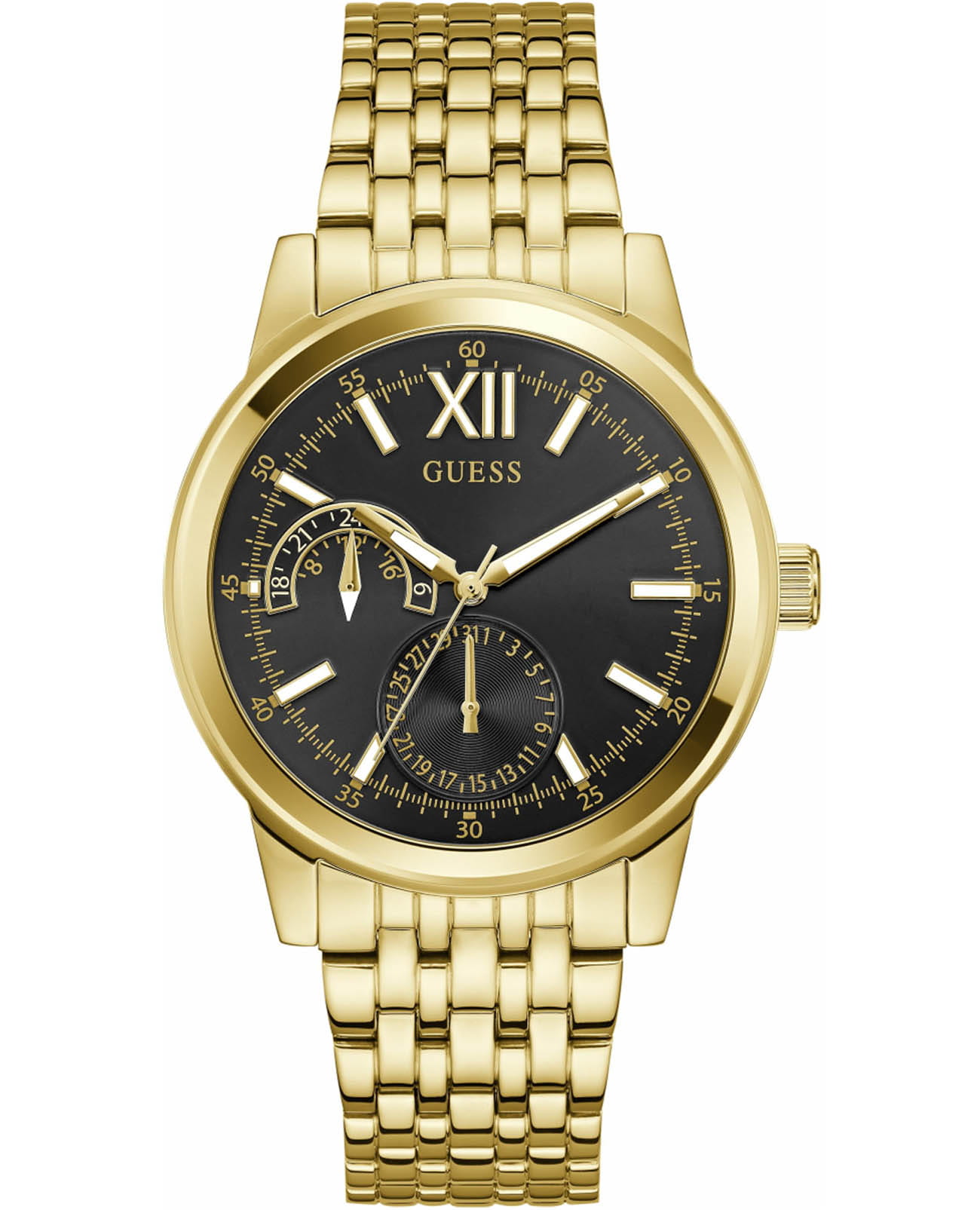 Мужские наручные часы Guess Dress Emerson GW0976G2 – это сочетание элегантности и современного стиля. Изысканные часы оснащены надежным кварцевым механизмом, который обеспечивает точность хода. Корпус часов выполнен из нержавеющей стали с IP-покрытиемIP-покрытиеМетод ионного напыления. Демонстрирует повышенную устойчивость к истиранию, окислению и химическим веществам. Под воздействием высокого давления и температуры около 1500°C молекулы металла надёжно соединяются с частицами корпуса часов. диаметром 42 мм и толщиной 10 мм, придающими модели особый характер. Циферблат оснащен метками в виде штрихов. Дата на отдельном циферблате. Вынесенный циферблат с 24-х часовым указателем времени.Люминесцентное покрытиеЛюминесцентное покрытиеПозволяет считывать показания времени в темноте. Производители наносят на стрелки, часовые индексы, безель или поверхность циферблата светонакопительный состав, дающий холодное свечение. на стрелках и метках обеспечивает отличную видимость в темноте. Стильный стальной браслет с IP-покрытиемIP-покрытиеМетод ионного напыления. Демонстрирует повышенную устойчивость к истиранию, окислению и химическим веществам. Под воздействием высокого давления и температуры около 1500°C молекулы металла надёжно соединяются с частицами корпуса часов. с раскладной застежкойРаскладная застёжкаТакой тип застёжки используется только на браслетах из металла. Она никогда не раскрывается полностью, происходит разделение на 2 и более частей. Раскладывающая застёжка снизит вероятность потери часов к минимуму. гарантирует комфортное ношение и надежную фиксацию. Минеральное стеклоМинеральное стеклоМинеральное стекло представляет собой искусственно выращенный минерал кварца. Такое стекло отличается особой устойчивостью к повреждениям и царапинам. Уступает по некоторым качествам сапфировому стеклу. защищает циферблат от царапин, а водозащита 30WR предохраняет часы от случайных брызг. Эта модель станет отличным выбором для тех, кто ценит стиль и функциональность в одном аксессуаре.