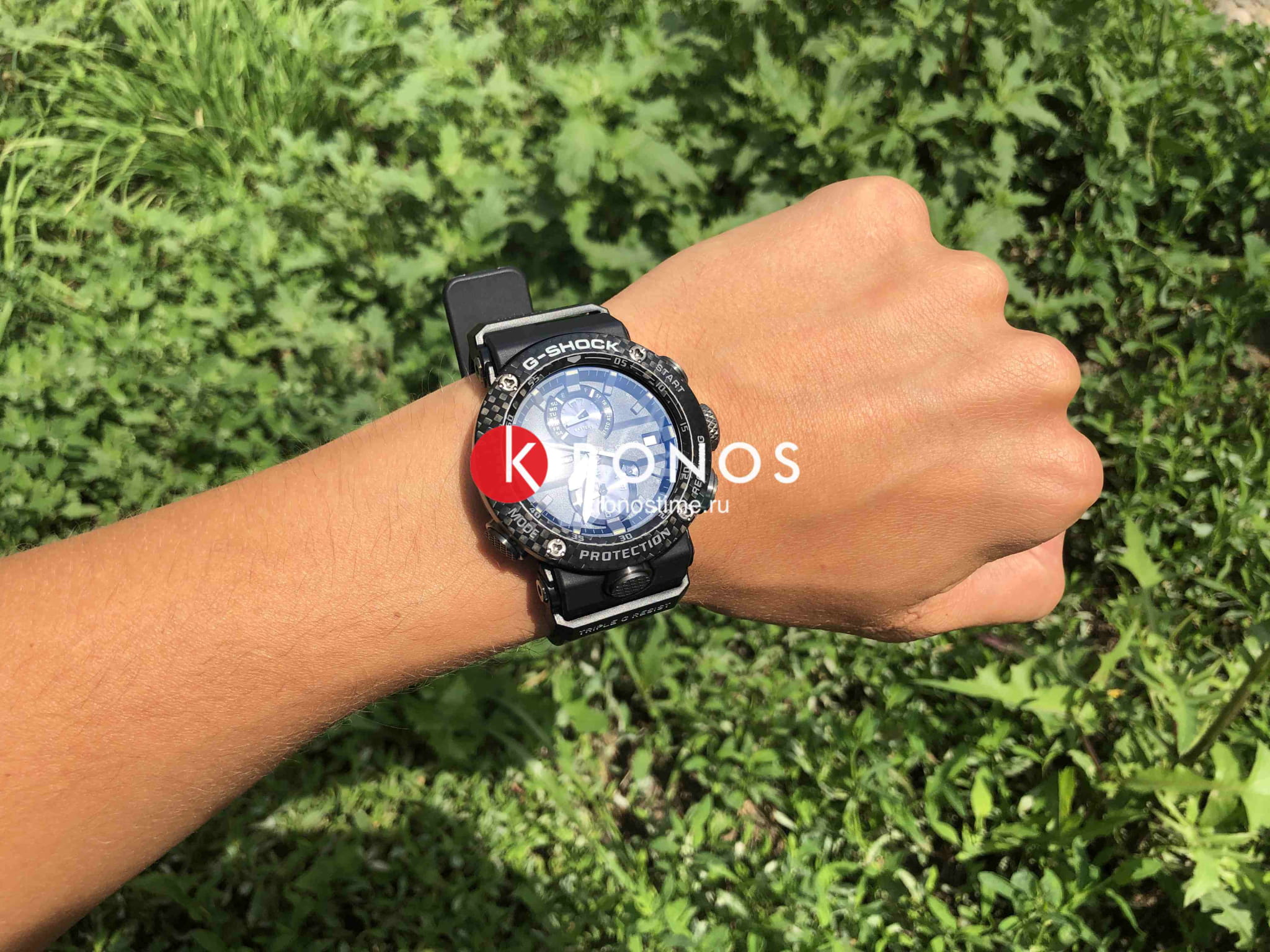 Внушительный аксессуар стильно смотрится на широком запястье, гармонично смотрятся крупные детали и общее тёмное исполнение. Задняя крышка здесь отсутствует, ударопрочный корпусУдаропрочный корпусМеханизм заключён в корпус, выполненный из современных материалов, устойчивых к ударам, механическим повреждениям и падению с высоты: инновационный пластик, карбон, нержавеющая сталь, титан. сделан из монолитного углеродного монокока, вдохновлённого конструкцией ранних самолётов. Он состоит из 52 карбоновых слоёв, уникальная текстура просматривается на боковых частях безеляБезельВнешний ободок, закрепляющий стекло. В спортивных часах так называется поворотное кольцо с делениями на циферблате, выполняет роль таймера – замеряет отрезки времени на шкале. Неподвижный безель – элемент декора. Однонаправленно вращающийся безель на дайверских часах позволяет фиксировать моменты погружения и выныривания на поверхность. – с успехом реализована технология Carbon Core GuardCarbon Core Guard Новейшая структура корпуса, разработанная Casio. Полиуретановая пластина дополнительно усилена карбоновыми вставками, что придаёт специальную защиту от механических повреждений. Карбон отличается лёгкостью и прочностью.. Полимерный ремешок тоже имеет усиление карбоновыми волокнами. Наручные часы обладают полезным функционалом: BluetoothBluetoothСовременная технология, позволяющая синхронизировать часы с телефоном и переносить данные. Часы с Bluetooth расширяют возможности вашего смартфона и делают его использование ещё более удобным., будильник, мировое времяМировое время Полезное часовое усложнение, отображающее время в основных городах и известных областях по всему миру, оно связано с часовыми поясами, удобно для путешественников и бизнесменов. , таймер, приём радиосигнала, питание от солнечной батареи . Сапфировое стекло с антибликовой обработкой. Яркая люминесцентная подсветкаЛюминесцентное покрытиеПозволяет считывать показания времени в темноте. Производители наносят на стрелки, часовые индексы, безель или поверхность циферблата светонакопительный состав, дающий холодное свечение.. Габариты: 50,1 x 46,4 x 16,9 мм.