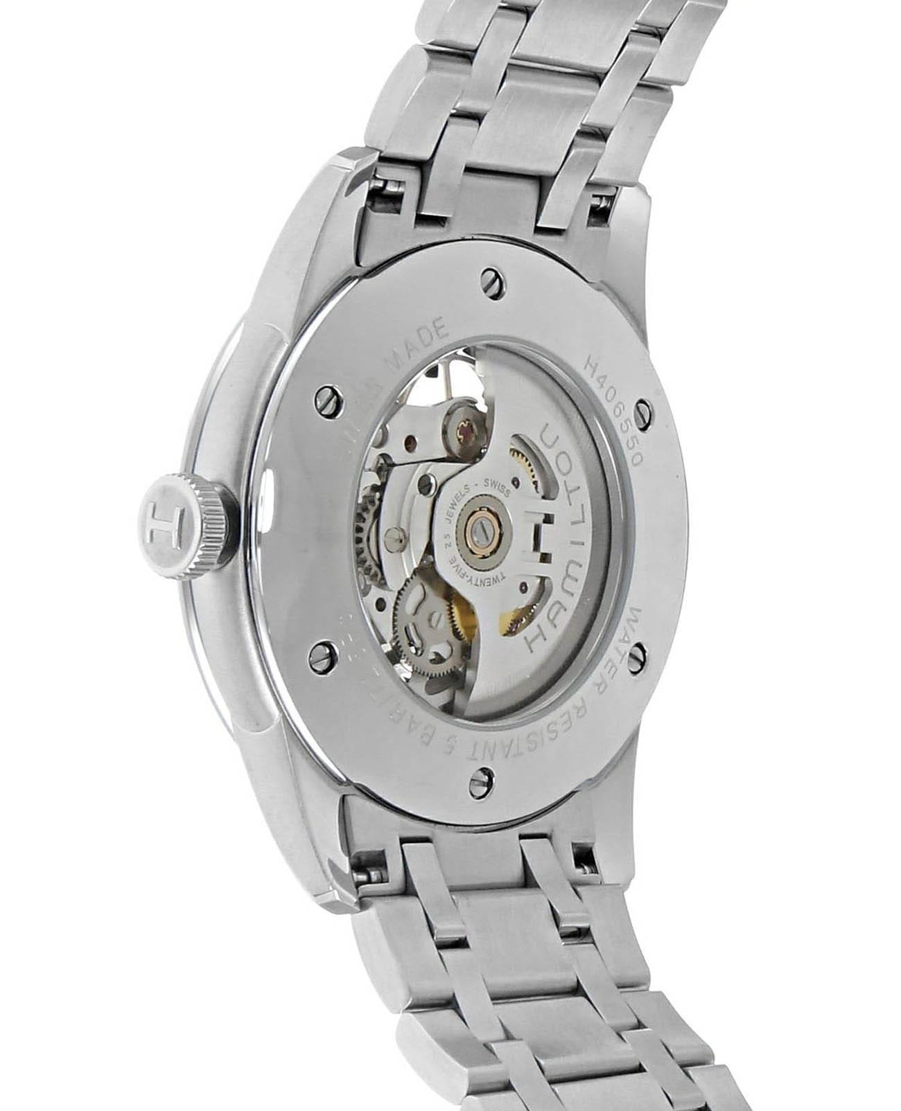 Мужские механические швейцарские часы Hamilton American Classic RailRoad Skeleton Auto H40655131, механический механизм (автоматический калибр) с высокой точностью. Сапфировое стекло устойчивое к появлению царапин, обладающее высокой прозрачностью. Класс водозащиты: 50 метров, позволит защитить корпус от случайных брызг или капель дождя. Корпус часов изготовлен из стали, цвета.