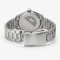 Hamilton Khaki Field Quartz H69401130 — компактные и универсальные часы в классическом военном стиле, с акцентом на надёжность и практичность. Корпус диаметром 38 мм выполнен из нержавеющей стали с сатинированной поверхностью. Он лёгкий, удобный и идеально подходит для запястий любого размера. Циферблат защищён сапфировым стекломСапфировое стеклоПрочный и надёжный материал из кристалла сапфира синтетического происхождения, характеризующийся особой твёрдостью и устойчивостью к царапинам и повреждениям. с антибликовым покрытиемАнтибликовое покрытиеСлой оксида металла в 0,13-0,3 микрон, благодаря которому стекло часов не бликует и не отражает свет. Антибликовое покрытие уменьшает отражение света в 10 раз, обеспечивая отличную читаемость показателей циферблата., устойчивым к царапинам и бликам. Циферблат оформлен в классическом армейском стиле: крупные арабские цифры, 24-часовая шкала по внутреннему кругу, стрелки и метки с люминесцентным покрытиемЛюминесцентное покрытиеПозволяет считывать показания времени в темноте. Производители наносят на стрелки, часовые индексы, безель или поверхность циферблата светонакопительный состав, дающий холодное свечение. для удобного считывания в темноте. Внутри установлен швейцарский кварцевый калибр ETA F05.105mh2 с функцией EOL-индикацииEOLПредставляет собой систему, уведомляющую владельца часов о необходимости замены элемента питания. За 2 недели до полного разряда батарейки секундная стрелка перестаёт ходить чётко и начинает перепрыгивать на 3-4 деления. — предупреждением о скором разряде батареи. Модель укомплектована браслетом из нержавеющей стали с раскладной застёжкойРаскладная застёжкаТакой тип застёжки используется только на браслетах из металла. Она никогда не раскрывается полностью, происходит разделение на 2 и более частей. Раскладывающая застёжка снизит вероятность потери часов к минимуму., обеспечивающей надёжную посадку. Водонепроницаемость 50 метров делает часы устойчивыми к брызгам и дождю, идеально подходящими для повседневного ношения. Khaki Field Quartz — надёжный выбор для тех, кто ценит простоту, точность и долговечность.
