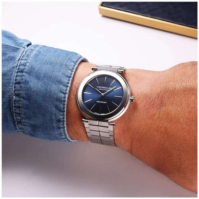 Мужские механические часы с ручным заводом Herbelin Newport Slim 1222B15S – отражающий идеальное сочетание современного дизайна, надёжности и функциональности. Элегантный облик станет превосходным завершением образа, наделив его индивидуальным характером. Корпус из нержавеющей стали 316L идеально сбалансирован и элегантен. Сапфировое стеклоСапфировое стеклоПрочный и надёжный материал из кристалла сапфира синтетического происхождения, характеризующийся особой твёрдостью и устойчивостью к царапинам и повреждениям. защищает циферблат от царапин и устойчивое к механическим повреждениям. Изысканный cтальной браслет из нержавеющей стали на застёжке-бабочке с кнопкамиЗастёжка "бабочка"Такой вид застёжки дополняется предохранителями, помогающими избежать случайного раскрытия браслета. Обладают изящным исполнением.  обеспечивает комфортное ношение. Водозащита 30 метров, позволит защитить корпус от случайных брызг или капель дождя. Эта модель – отличный выбор для тех, кто ищет сочетание стиля, качества и функциональности. Часы станут не только полезным аксессуаром, но и выразительным элементом вашего имиджа.