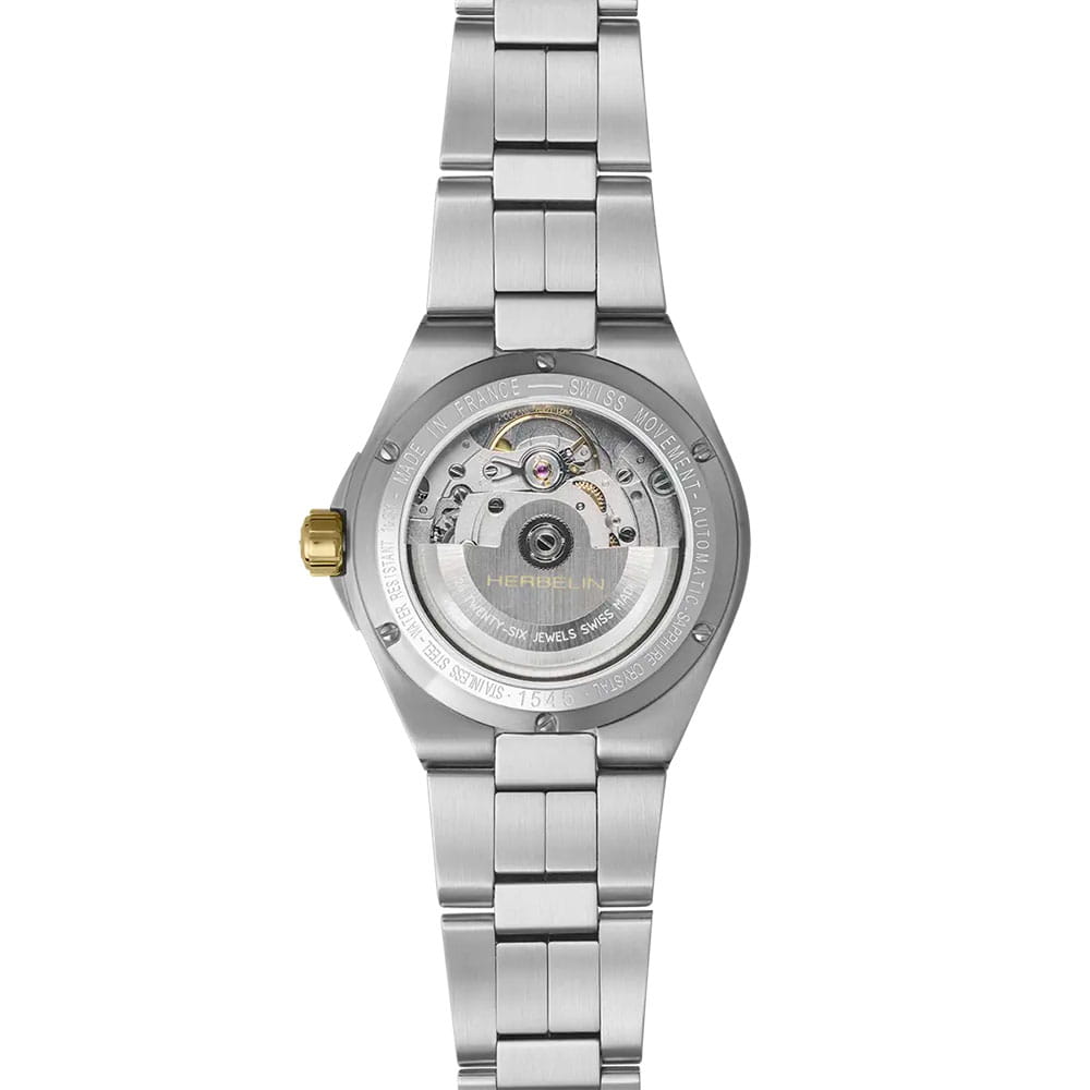 Женские механические часы с автоподзаводом Herbelin Cap Camarat 1545B19T – отражающий идеальное сочетание современного дизайна, надёжности и функциональности. Элегантный облик станет превосходным завершением образа, наделив его индивидуальным характером. Корпус из нержавеющей стали серебристого цвета, диаметром 37 мм, идеально сбалансирован и элегантен. Сапфировое стеклоСапфировое стеклоПрочный и надёжный материал из кристалла сапфира синтетического происхождения, характеризующийся особой твёрдостью и устойчивостью к царапинам и повреждениям. защищает циферблат от царапин и устойчивое к механическим повреждениям. БезельБезельВнешний ободок, закрепляющий стекло. В спортивных часах так называется поворотное кольцо с делениями на циферблате, выполняет роль таймера – замеряет отрезки времени на шкале. Неподвижный безель – элемент декора. Однонаправленно вращающийся безель на дайверских часах позволяет фиксировать моменты погружения и выныривания на поверхность. украшен винтами, заводная головка с защитой. Окошко даты находится в положении 6 часов. Стрелки и метки с люминесцентным покрытиемЛюминесцентное покрытиеПозволяет считывать показания времени в темноте. Производители наносят на стрелки, часовые индексы, безель или поверхность циферблата светонакопительный состав, дающий холодное свечение.. Стальной браслет на застёжке-бабочке с кнопкамиЗастёжка "бабочка"Такой вид застёжки дополняется предохранителями, помогающими избежать случайного раскрытия браслета. Обладают изящным исполнением. обеспечивает комфортное ношение. Водозащита 100 метров позволит плавать, нырять и заниматься другими водными видами спорта. Эта модель – отличный выбор для тех, кто ищет сочетание стиля, качества и функциональности. Часы станут не только полезным аксессуаром, но и выразительным элементом вашего имиджа.