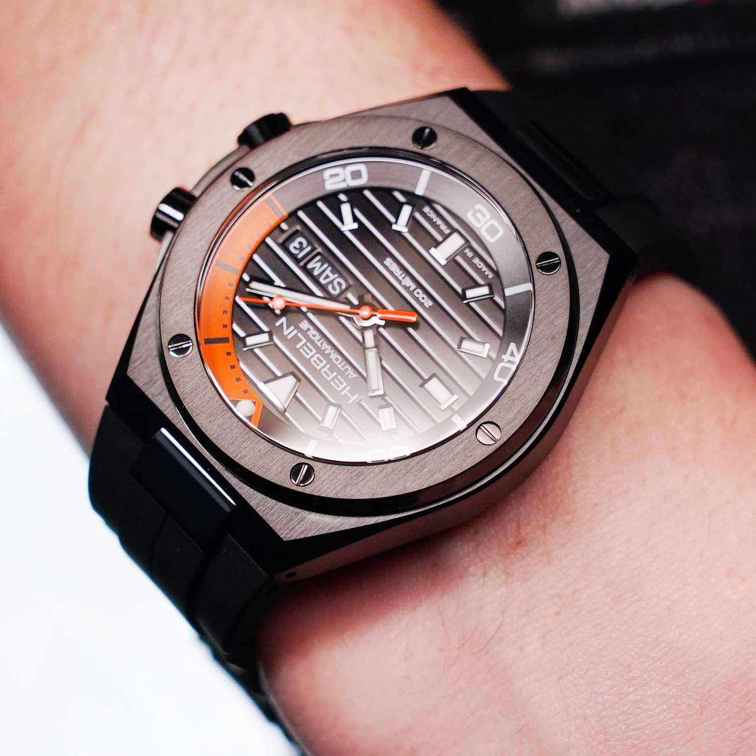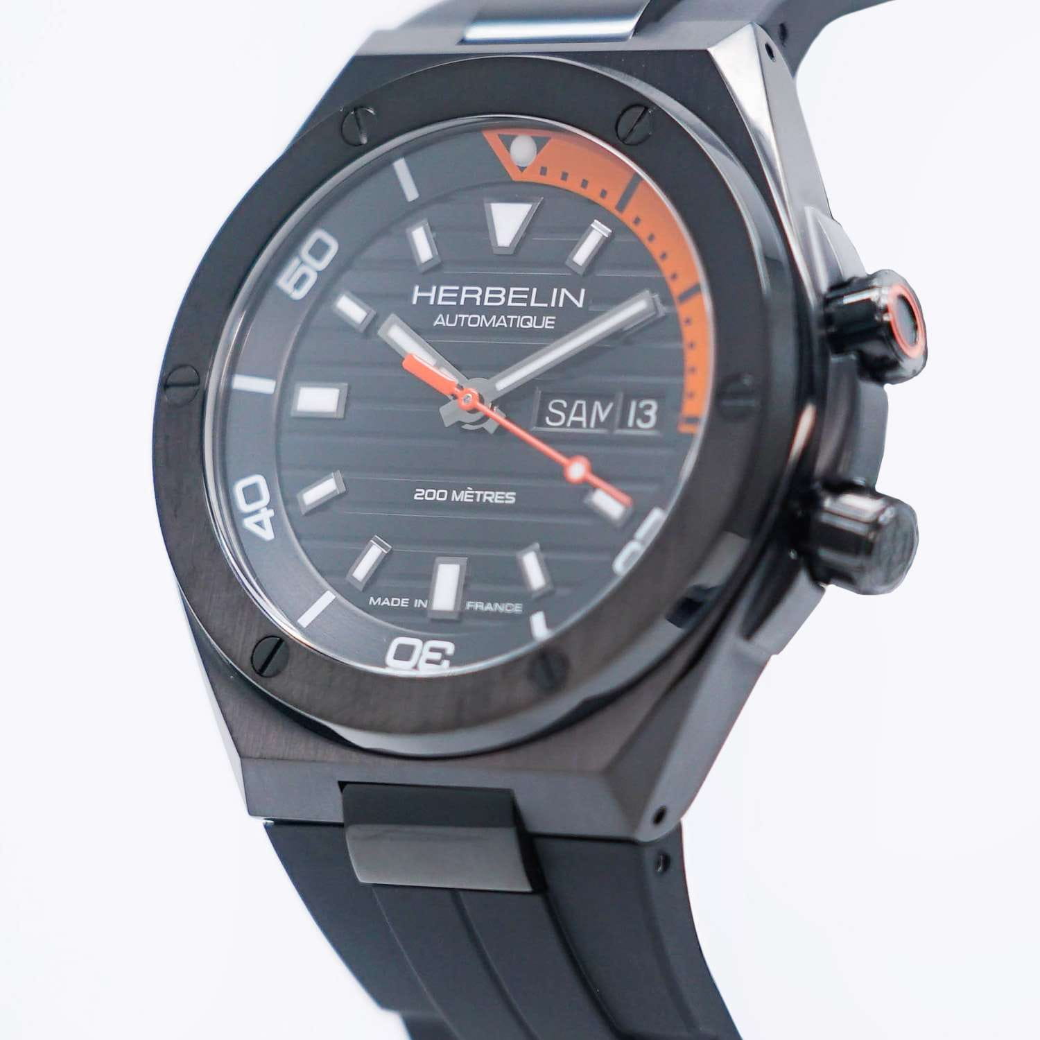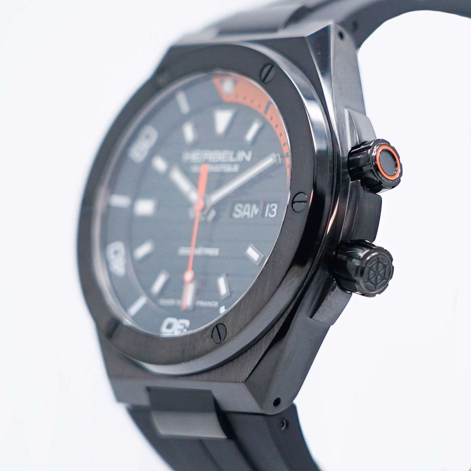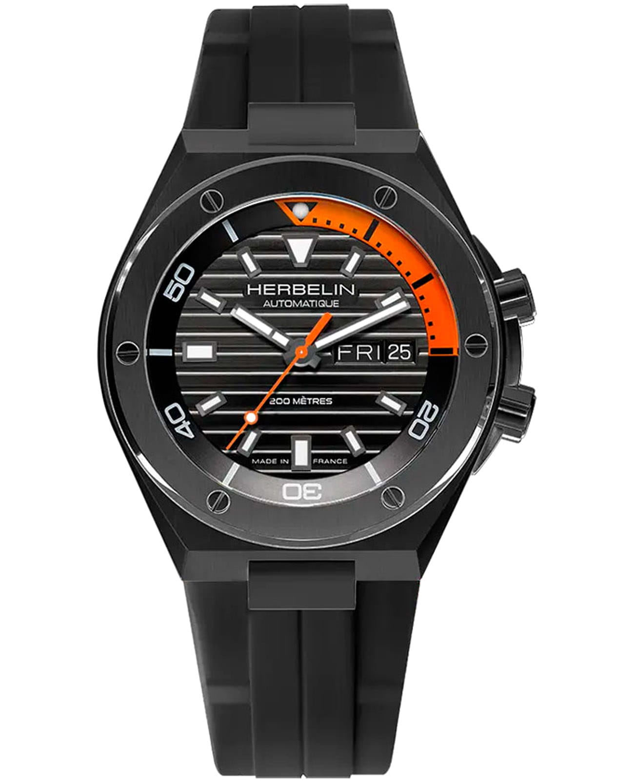 Мужские механические часы с автоподзаводом Herbelin Cap Camarat 1745N14CA – отражающий идеальное сочетание современного дизайна, надёжности и функциональности. Элегантный облик станет превосходным завершением образа, наделив его индивидуальным характером. Корпус из нержавеющей стали с PVD-покрытиемPVDУльтратонкое покрытие наносится в технике вакуумного напыления, сочетает в себе нитрид титана особой прочности со слоем золота или оксида хрома. Несёт в себе декоративную или защитную функцию. черного цвета, диаметром 42 мм, идеально сбалансирован и элегантен. Сапфировое стеклоСапфировое стеклоПрочный и надёжный материал из кристалла сапфира синтетического происхождения, характеризующийся особой твёрдостью и устойчивостью к царапинам и повреждениям. защищает циферблат от царапин и устойчивое к механическим повреждениям. БезельБезельВнешний ободок, закрепляющий стекло. В спортивных часах так называется поворотное кольцо с делениями на циферблате, выполняет роль таймера – замеряет отрезки времени на шкале. Неподвижный безель – элемент декора. Однонаправленно вращающийся безель на дайверских часах позволяет фиксировать моменты погружения и выныривания на поверхность. украшен винтами, заводная головка с защитой. Стрелки и метки с люминесцентным покрытиемЛюминесцентное покрытиеПозволяет считывать показания времени в темноте. Производители наносят на стрелки, часовые индексы, безель или поверхность циферблата светонакопительный состав, дающий холодное свечение.. Полимерный ремешок на стандартной застежке обеспечивает комфортное ношение. Прозрачная задняя крышка. Водозащита 200 метров позволит плавать, нырять и заниматься другими водными видами спорта. Эта модель – отличный выбор для тех, кто ищет сочетание стиля, качества и функциональности. Часы станут не только полезным аксессуаром, но и выразительным элементом вашего имиджа.