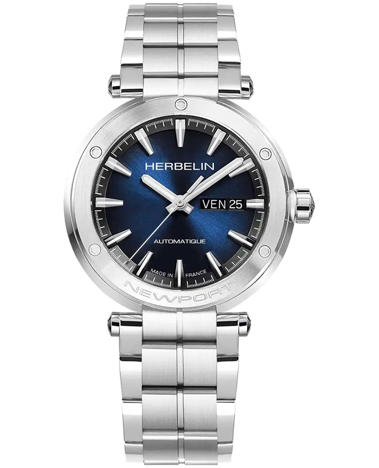 Мужские механические часы с автоподзаводом Herbelin Newport 1768B15 – отражающий идеальное сочетание современного дизайна, надёжности и функциональности. Элегантный облик станет превосходным завершением образа, наделив его индивидуальным характером. Корпус из нержавеющей стали серебристого цвета, диаметром 42 мм, идеально сбалансирован и элегантен. Сапфировое стеклоСапфировое стеклоПрочный и надёжный материал из кристалла сапфира синтетического происхождения, характеризующийся особой твёрдостью и устойчивостью к царапинам и повреждениям. защищает циферблат от царапин и устойчивое к механическим повреждениям. БезельБезельВнешний ободок, закрепляющий стекло. В спортивных часах так называется поворотное кольцо с делениями на циферблате, выполняет роль таймера – замеряет отрезки времени на шкале. Неподвижный безель – элемент декора. Однонаправленно вращающийся безель на дайверских часах позволяет фиксировать моменты погружения и выныривания на поверхность. украшен винтами. Окошко даты находится в положении 3 часа. Стрелки и метки с люминесцентным покрытиемЛюминесцентное покрытиеПозволяет считывать показания времени в темноте. Производители наносят на стрелки, часовые индексы, безель или поверхность циферблата светонакопительный состав, дающий холодное свечение.. Стальной браслет на застёжке-бабочке с кнопкамиЗастёжка "бабочка"Такой вид застёжки дополняется предохранителями, помогающими избежать случайного раскрытия браслета. Обладают изящным исполнением. обеспечивает комфортное ношение. Водозащита 100 метров позволит плавать, нырять и заниматься другими водными видами спорта. Эта модель – отличный выбор для тех, кто ищет сочетание стиля, качества и функциональности. Часы станут не только полезным аксессуаром, но и выразительным элементом вашего имиджа.