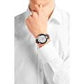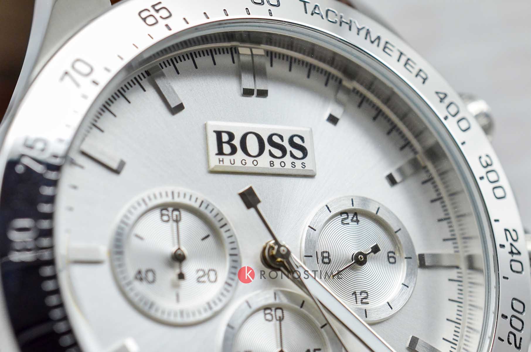 Мужские часы Hugo Boss Ikon HB1513175 представлены в строгом круглом корпусе из нержавеющей стали диаметром 44 мм, защищенным прочным минеральным стекломМинеральное стеклоМинеральное стекло представляет собой искусственно выращенный минерал кварца. Такое стекло отличается особой устойчивостью к повреждениям и царапинам. Уступает по некоторым качествам сапфировому стеклу.. Модель оснащена точным кварцевым механизмом c калибром Seiko с функцией хронографаХронографФункция позволяет измерять отрезки времени с особой точностью: часы, минуты, секунды. Верным признаком хронографа является наличие на циферблате 3 дополнительных окошек-счётчиков. и 24-часовым индикатором. Белый эффектный циферблат с контрастными серебристыми метками и стрелками с люминесцентным покрытиемЛюминесцентное покрытиеПозволяет считывать показания времени в темноте. Производители наносят на стрелки, часовые индексы, безель или поверхность циферблата светонакопительный состав, дающий холодное свечение., обеспечивающий отличную видимость в темноте. Эти изысканные часы также оснащены тахиметромТахиметрРазмеченная шкала, располагается на ободке или безеле часов. Тахиметр позволяет рассчитать скорость на определённом участке пути, расстояние измеряется в километрах или милях.. Кожаный ремень со стандартной застежкой обеспечивает комфортную посадку, а водонепроницаемость 100 метров делает модель надежной для повседневной носки.