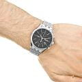 Мужские элегантные часы Hugo Boss Jet HB1513383 сочетают современный дизайн и функциональность в 41-мм корпусе из нержавеющей стали серебристого цвета. Модель оснащена кварцевым механизмом, обеспечивающим точность хода, и функциями хронографаХронографФункция позволяет измерять отрезки времени с особой точностью: часы, минуты, секунды. Верным признаком хронографа является наличие на циферблате 3 дополнительных окошек-счётчиков. с cекундомеромСекундомерСекундоме́р — прибор, способный измерять интервалы времени с точностью до долей секунды., а также индикацией даты в положении 4 часа. Черный стильный циферблат защищен устойчивым к царапинам минеральным стекломМинеральное стеклоМинеральное стекло представляет собой искусственно выращенный минерал кварца. Такое стекло отличается особой устойчивостью к повреждениям и царапинам. Уступает по некоторым качествам сапфировому стеклу., а стальной браслет на раскладной застежкеРаскладная застёжкаТакой тип застёжки используется только на браслетах из металла. Она никогда не раскрывается полностью, происходит разделение на 2 и более частей. Раскладывающая застёжка снизит вероятность потери часов к минимуму. гарантирует комфорт и безопасность при носке. Часы обладают водонепроницаемостью WR50 (5 атм), что защищает часы от брызг или дождя. Эта модель станет идеальным аксессуаром для ежедневного использования и особых мероприятий, подчеркивая вашу индивидуальность и стиль.