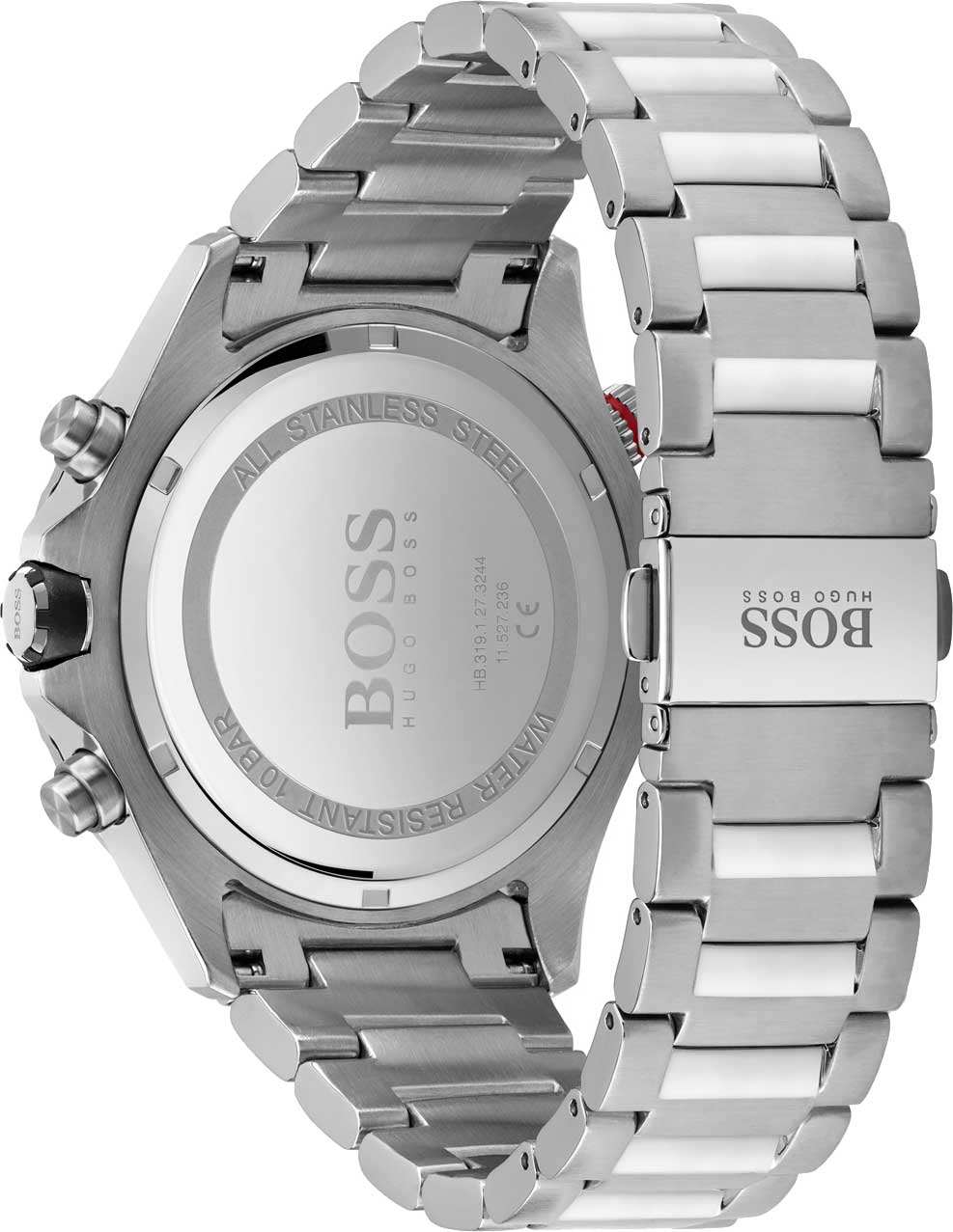 Мужские часы Hugo Boss Globetrotter HB1513823 представлены в 46-мм корпусе из нержавеющей стали 316L с синим циферблатом. Оснащены кварцевым механизмом с функцией хронографаХронографФункция позволяет измерять отрезки времени с особой точностью: часы, минуты, секунды. Верным признаком хронографа является наличие на циферблате 3 дополнительных окошек-счётчиков. и тахиметромТахиметрРазмеченная шкала, располагается на ободке или безеле часов. Тахиметр позволяет рассчитать скорость на определённом участке пути, расстояние измеряется в километрах или милях. на внутреннем безелеБезельВнешний ободок, закрепляющий стекло. В спортивных часах так называется поворотное кольцо с делениями на циферблате, выполняет роль таймера – замеряет отрезки времени на шкале. Неподвижный безель – элемент декора. Однонаправленно вращающийся безель на дайверских часах позволяет фиксировать моменты погружения и выныривания на поверхность.. Циферблат защищен устойчивым к царапинам минеральным стекломМинеральное стеклоМинеральное стекло представляет собой искусственно выращенный минерал кварца. Такое стекло отличается особой устойчивостью к повреждениям и царапинам. Уступает по некоторым качествам сапфировому стеклу.. Стальной браслет дополнен раскладной застёжкойРаскладная застёжкаТакой тип застёжки используется только на браслетах из металла. Она никогда не раскрывается полностью, происходит разделение на 2 и более частей. Раскладывающая застёжка снизит вероятность потери часов к минимуму.. Водонепроницаемость 100 метров (10 ATM) позволяет использовать часы для плавания. Дополнительные функции включают окошко даты и 24-часовой индикатор.
