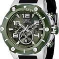 Мужские наручные часы-хронографХронографФункция позволяет измерять отрезки времени с особой точностью: часы, минуты, секунды. Верным признаком хронографа является наличие на циферблате 3 дополнительных окошек-счётчиков. Invicta IN40894 из коллекции Speedway сочетают в себе спортивный дизайн и надежность современных технологий. Модель обладает круглым корпусом, изготовленным из нержавеющей стали, что обеспечивает высокую устойчивость к внешним воздействиям . БезельБезельВнешний ободок, закрепляющий стекло. В спортивных часах так называется поворотное кольцо с делениями на циферблате, выполняет роль таймера – замеряет отрезки времени на шкале. Неподвижный безель – элемент декора. Однонаправленно вращающийся безель на дайверских часах позволяет фиксировать моменты погружения и выныривания на поверхность. с IP-покрытиемIP-покрытиеМетод ионного напыления. Демонстрирует повышенную устойчивость к истиранию, окислению и химическим веществам. Под воздействием высокого давления и температуры около 1500°C молекулы металла надёжно соединяются с частицами корпуса часов.. Ремешок оснащен классической застежкой, гарантирующей комфортное ношение и безопасность . Циферблат оснащен окном даты, расположенным в положении 6 часов, что делает их практичными для различных задач . Для защиты используется минеральное стеклоМинеральное стеклоМинеральное стекло представляет собой искусственно выращенный минерал кварца. Такое стекло отличается особой устойчивостью к повреждениям и царапинам. Уступает по некоторым качествам сапфировому стеклу., обеспечивающее прочную защиту от царапин . Часы работают на японском кварцевом механизме, что гарантирует точное время без необходимости подзаводки . Модель также является хронографомХронографФункция позволяет измерять отрезки времени с особой точностью: часы, минуты, секунды. Верным признаком хронографа является наличие на циферблате 3 дополнительных окошек-счётчиков., оснащенным функцией секундомераСекундомерСекундоме́р — прибор, способный измерять интервалы времени с точностью до долей секунды., что делает ее идеальной для активного образа жизни . Водонепроницаемость часов достигает 100 метров (10 атмосфер), что позволяет использовать их во время плавания и других водных видов спорта . Подсветка выполнена с использованием люминесцентного покрытияЛюминесцентное покрытиеПозволяет считывать показания времени в темноте. Производители наносят на стрелки, часовые индексы, безель или поверхность циферблата светонакопительный состав, дающий холодное свечение., что обеспечивает удобство использования в темное время суток .