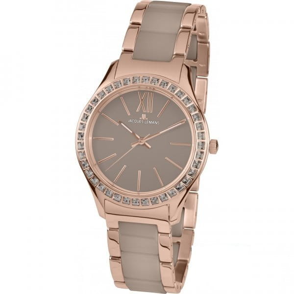 Стильные наручные часы Jacques Lemans идеально дополнят ваш образ. Механизм: Кварцевые; Корпус: сталь с розовым IP покрытием; Браслет: стальной с розовым IP покрытием и керамическими вставками; Стекло: Минеральное; Водозащита: 100 м. (WR 100).