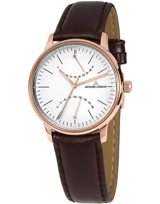 Наручные часы Jacques Lemans призваны ставить на первое место индивидуальный стиль владельца, классическая элегантность придётся по вкусу каждому. Брендовые часы привлекают минималистичным дизайном, отсутствие вычурности и обилия декорирующих элементов делают модель лучшим решением для ежедневного применения. Аксессуар можно носить с деловыми костюмами и повседневной одеждой, он органично сочетается как с классическими брюками, так и с рваными джинсами. Это настоящее часовое искусство высокого качества, часы считаются актуальным вариантом на все времена и с идеальной точностью показывают время благодаря надёжному японскому механизму.