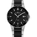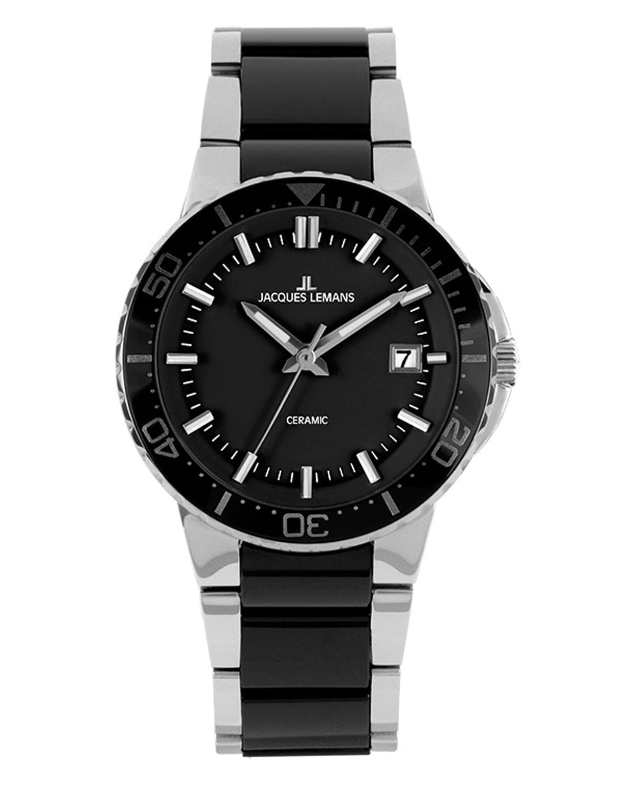 Женские австрийские часы Jacques Lemans High Tech Ceramic 1-2165A с минеральным стекломМинеральное стеклоМинеральное стекло представляет собой искусственно выращенный минерал кварца. Такое стекло отличается особой устойчивостью к повреждениям и царапинам. Уступает по некоторым качествам сапфировому стеклу., кварцевый механизм с высокой точностью. Корпус часов изготовлен из нержавеющей стали. Вращающийся безельБезельВнешний ободок, закрепляющий стекло. В спортивных часах так называется поворотное кольцо с делениями на циферблате, выполняет роль таймера – замеряет отрезки времени на шкале. Неподвижный безель – элемент декора. Однонаправленно вращающийся безель на дайверских часах позволяет фиксировать моменты погружения и выныривания на поверхность. из нержавеющей стали и керамики. Стрелки с люминесцентным покрытиемЛюминесцентное покрытиеПозволяет считывать показания времени в темноте. Производители наносят на стрелки, часовые индексы, безель или поверхность циферблата светонакопительный состав, дающий холодное свечение.. Окошко даты в положении 3 часа. Класс водозащиты: 100 метров, позволит плавать, нырять и заниматься другими водными видами спорта. Стальной браслет со вставками из высокотехнологичной керамикиВысокотехнологичная керамикаИнновационный запатентованный Rado материал с гладкой или матовой поверхностью. Керамика за счёт кристаллической структуры обладает повышенной устойчивостью от возникновения царапин. Материал способен принимать температуру тела человека, обеспечивая невероятный комфорт при ношении. на раскладной застёжкеРаскладная застёжкаТакой тип застёжки используется только на браслетах из металла. Она никогда не раскрывается полностью, происходит разделение на 2 и более частей. Раскладывающая застёжка снизит вероятность потери часов к минимуму..