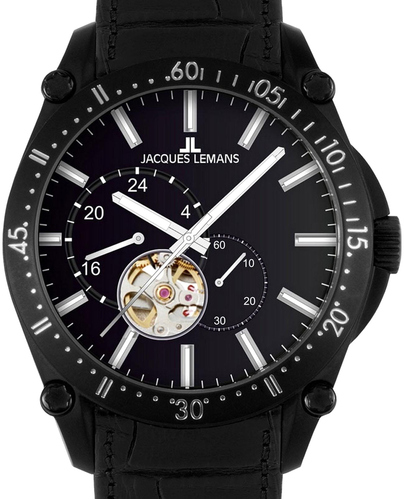 Мужские механические часы-скелетоны Jacques Lemans 1-2201A – лаконичная красота и изысканная элегантность. Оригинальная модель с классическим оформлением станет превосходным завершением образа, наделив его индивидуальным характером. Корпус выполнен из нержавеющей стали с PVD-покрытиемPVDУльтратонкое покрытие наносится в технике вакуумного напыления, сочетает в себе нитрид титана особой прочности со слоем золота или оксида хрома. Несёт в себе декоративную или защитную функцию. черного цвета, диаметром 44 мм, что обеспечивает долговечность и утончённый внешний вид. Минеральное стеклоМинеральное стеклоМинеральное стекло представляет собой искусственно выращенный минерал кварца. Такое стекло отличается особой устойчивостью к повреждениям и царапинам. Уступает по некоторым качествам сапфировому стеклу. с сапфировым напылением защищает циферблат от царапин. Кожаный ремешок на стандартной застёжке обеспечивает комфортное ношение. Водозащита 100 метров позволит плавать, нырять и заниматься другими водными видами спорта. Стрелки и метки с люминесцентным покрытиемЛюминесцентное покрытиеПозволяет считывать показания времени в темноте. Производители наносят на стрелки, часовые индексы, безель или поверхность циферблата светонакопительный состав, дающий холодное свечение. позволяющие легко определять время даже в темноте. БезельБезельВнешний ободок, закрепляющий стекло. В спортивных часах так называется поворотное кольцо с делениями на циферблате, выполняет роль таймера – замеряет отрезки времени на шкале. Неподвижный безель – элемент декора. Однонаправленно вращающийся безель на дайверских часах позволяет фиксировать моменты погружения и выныривания на поверхность. дополнен минутной шкалой. Запас хода 42 ч. На отдельные циферблаты вынесены индикатор 24-х часов и малая секундная стрелка. Сквозь прозрачное окошко можно наблюдать за работой механизма часов. Рифленая заводная головка с защитой. Это аксессуар для мужчины, который ценит классический стиль и функциональность.
