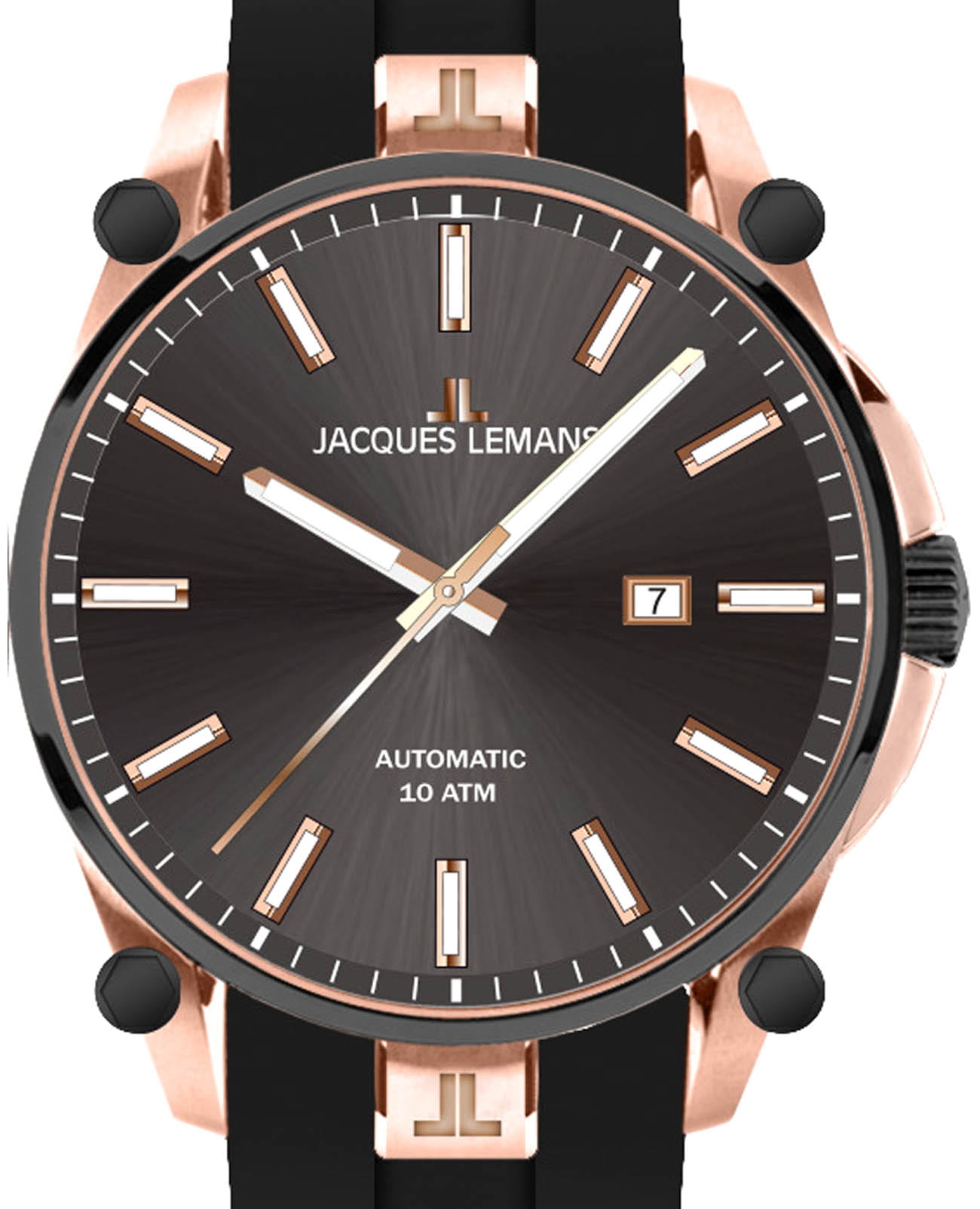 Мужские механические часы с автоподзаводом Jacques Lemans 1-2203B – лаконичная красота и изысканная элегантность. Оригинальная модель с классическим оформлением станет превосходным завершением образа, наделив его индивидуальным характером. Корпус выполнен из нержавеющей стали с PVD-покрытиемPVDУльтратонкое покрытие наносится в технике вакуумного напыления, сочетает в себе нитрид титана особой прочности со слоем золота или оксида хрома. Несёт в себе декоративную или защитную функцию. цвета розового золота, диаметром 44 мм, что обеспечивает долговечность и утончённый внешний вид. Минеральное стеклоМинеральное стеклоМинеральное стекло представляет собой искусственно выращенный минерал кварца. Такое стекло отличается особой устойчивостью к повреждениям и царапинам. Уступает по некоторым качествам сапфировому стеклу. с сапфировым напылением защищает циферблат от царапин. Силиконовый ремешок на стандартной застёжке обеспечивает комфортное ношение. Неподвижный безельБезельВнешний ободок, закрепляющий стекло. В спортивных часах так называется поворотное кольцо с делениями на циферблате, выполняет роль таймера – замеряет отрезки времени на шкале. Неподвижный безель – элемент декора. Однонаправленно вращающийся безель на дайверских часах позволяет фиксировать моменты погружения и выныривания на поверхность. с PVD-покрытиемPVDУльтратонкое покрытие наносится в технике вакуумного напыления, сочетает в себе нитрид титана особой прочности со слоем золота или оксида хрома. Несёт в себе декоративную или защитную функцию. черного цвета. Водозащита 100 метров позволит плавать, нырять и заниматься другими водными видами спорта. Стрелки и метки с люминесцентным покрытиемЛюминесцентное покрытиеПозволяет считывать показания времени в темноте. Производители наносят на стрелки, часовые индексы, безель или поверхность циферблата светонакопительный состав, дающий холодное свечение. позволяющие легко определять время даже в темноте. Окошко даты находится в положении 3 часа. Рифленая заводная головка с защитой. Это аксессуар для мужчины, который ценит классический стиль и функциональность.