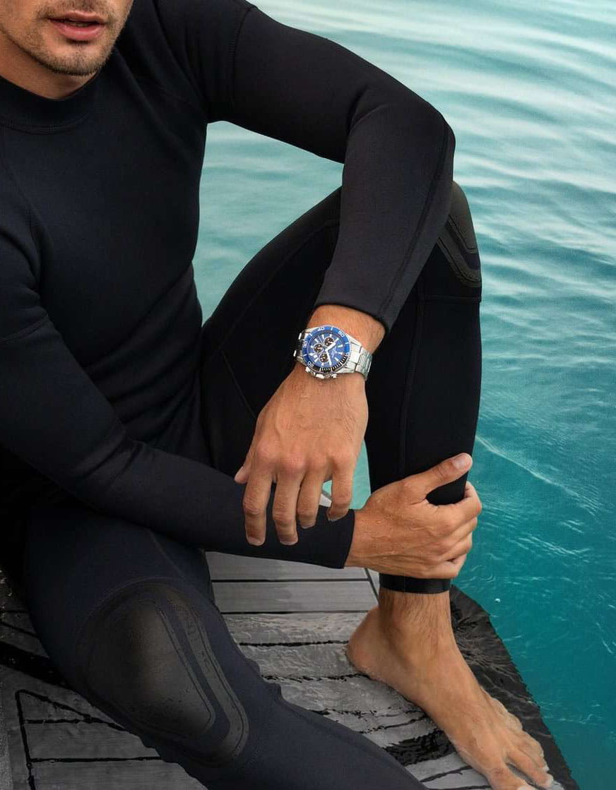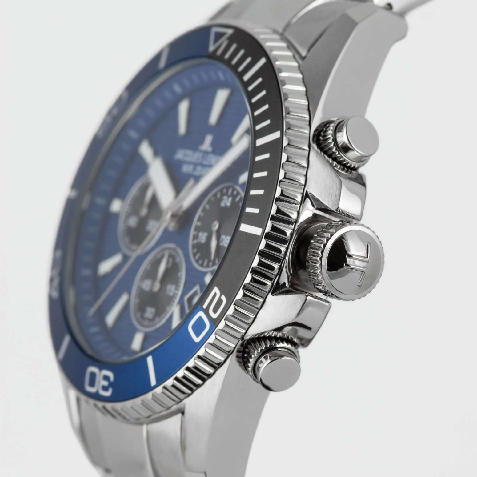 Мужские кварцевые часы-хронографХронографФункция позволяет измерять отрезки времени с особой точностью: часы, минуты, секунды. Верным признаком хронографа является наличие на циферблате 3 дополнительных окошек-счётчиков. с секундомеромСекундомерСекундоме́р — прибор, способный измерять интервалы времени с точностью до долей секунды. Jacques Lemans 1-2206H – лаконичная красота и изысканная элегантность. Оригинальная модель с классическим оформлением станет превосходным завершением образа, наделив его индивидуальным характером. Корпус выполнен из нержавеющей стали серебристого цвета, диаметром 44 мм, что обеспечивает долговечность и утончённый внешний вид. Минеральное стеклоМинеральное стеклоМинеральное стекло представляет собой искусственно выращенный минерал кварца. Такое стекло отличается особой устойчивостью к повреждениям и царапинам. Уступает по некоторым качествам сапфировому стеклу. повышенной прочности Crystex защищает циферблат от царапин. Поворотный безельБезельВнешний ободок, закрепляющий стекло. В спортивных часах так называется поворотное кольцо с делениями на циферблате, выполняет роль таймера – замеряет отрезки времени на шкале. Неподвижный безель – элемент декора. Однонаправленно вращающийся безель на дайверских часах позволяет фиксировать моменты погружения и выныривания на поверхность. с PVD-покрытиемPVDУльтратонкое покрытие наносится в технике вакуумного напыления, сочетает в себе нитрид титана особой прочности со слоем золота или оксида хрома. Несёт в себе декоративную или защитную функцию.. Стальной браслет на раскладной застёжке с фиксаторомРаскладная застёжкаТакой тип застёжки используется только на браслетах из металла. Она никогда не раскрывается полностью, происходит разделение на 2 и более частей. Раскладывающая застёжка снизит вероятность потери часов к минимуму. обеспечивает комфортное ношение Водозащита 200 метров позволит плавать, нырять и заниматься другими водными видами спорта. Стрелки и метки с люминесцентным покрытиемЛюминесцентное покрытиеПозволяет считывать показания времени в темноте. Производители наносят на стрелки, часовые индексы, безель или поверхность циферблата светонакопительный состав, дающий холодное свечение. позволяющие легко определять время даже в темноте. 12-ти и 24-х часовой формат времени. Окошко даты находится в положении между 4 и 5 часами. Рифленая заводная головка с защитой. Это аксессуар для мужчины, который ценит классический стиль и функциональность.