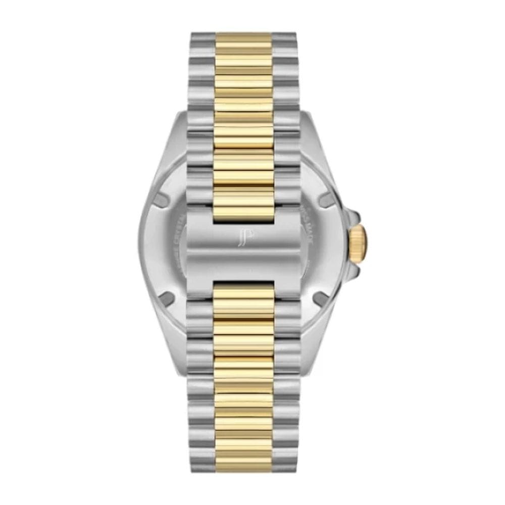 Jacques Philippe JPQGS3373X8V2 — выразительная мужская модель с лаконичным дизайном и высоким уровнем надёжности. Корпус диаметром 40 мм выполнен из нержавеющей стали и отличается уверенным, но сдержанным силуэтом. Толщина корпуса составляет около 12 мм, что придаёт модели визуальную прочность и делает её заметной на запястье. БезельБезельВнешний ободок, закрепляющий стекло. В спортивных часах так называется поворотное кольцо с делениями на циферблате, выполняет роль таймера – замеряет отрезки времени на шкале. Неподвижный безель – элемент декора. Однонаправленно вращающийся безель на дайверских часах позволяет фиксировать моменты погружения и выныривания на поверхность. с PVD-покрытиемPVDУльтратонкое покрытие наносится в технике вакуумного напыления, сочетает в себе нитрид титана особой прочности со слоем золота или оксида хрома. Несёт в себе декоративную или защитную функцию..