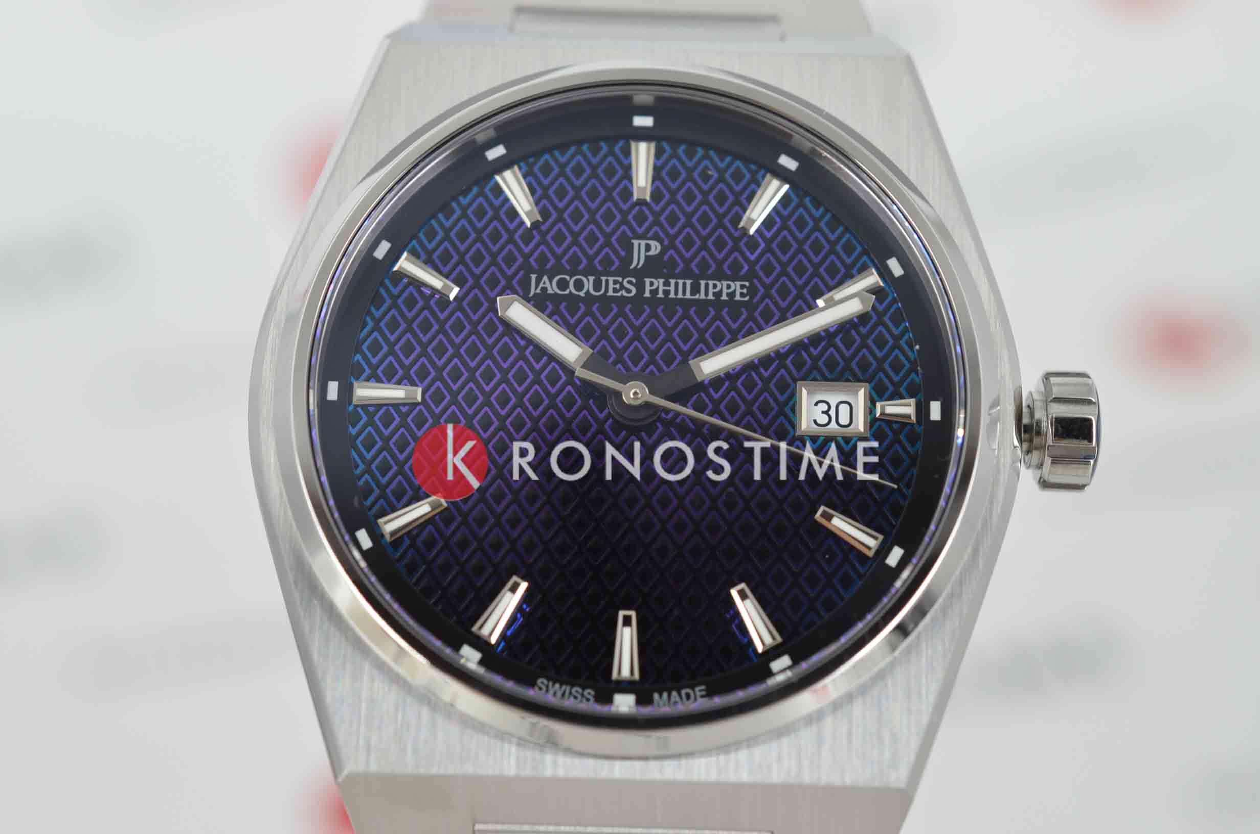 Швейцарские мужские часы Jacques Philippe Aurora JPQGS4213X6RBW, кварцевый механизм с высокой точностью. Сапфировое стеклоСапфировое стеклоПрочный и надёжный материал из кристалла сапфира синтетического происхождения, характеризующийся особой твёрдостью и устойчивостью к царапинам и повреждениям. устойчивое к появлению царапин, обладающее высокой прозрачностью. Корпус часов изготовлен из нержавеющей стали. Класс водозащиты: 50 метров, позволит защитить корпус от случайных брызг или капель дождя. Стальной браслет на застёжке-бабочке с кнопкамиЗастёжка "бабочка"Такой вид застёжки дополняется предохранителями, помогающими избежать случайного раскрытия браслета. Обладают изящным исполнением. . Окошко даты находится в положении 3 часа. Стрелки и метки с люминесцентным покрытиемЛюминесцентное покрытиеПозволяет считывать показания времени в темноте. Производители наносят на стрелки, часовые индексы, безель или поверхность циферблата светонакопительный состав, дающий холодное свечение..
