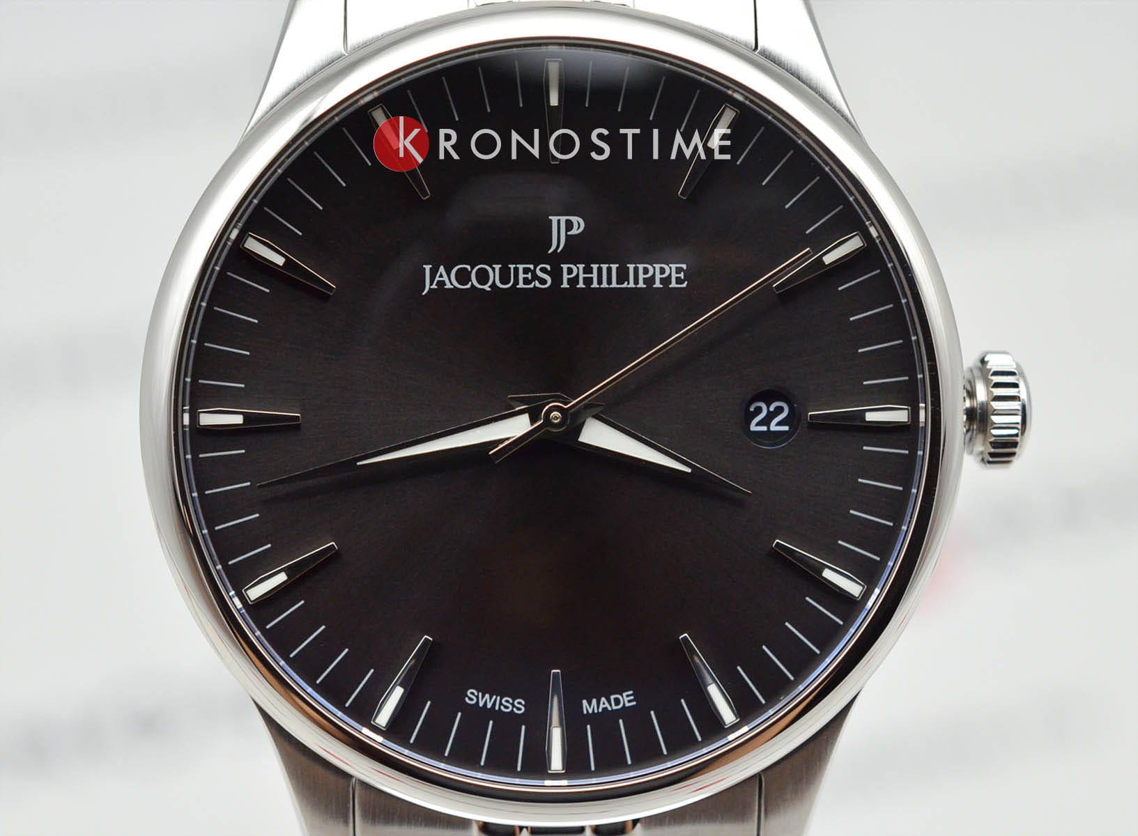 Jacques Philippe JPQGS661316 — стильные мужские часы в классическом формате с акцентом на надёжность и элегантность. Корпус круглой формы диаметром 40 мм из нержавеющей стали отличается утонченным силуэтом при толщине примерно 12 мм, обеспечивая комфорт при длительном ношении . Циферблат чёрного цвета оформлен лаконично: тонкие стрелки и минималистичные часовые метки подчёркивают строгий характер модели. Встроенная функция отображения даты придаёт часы практичность без лишнего визуального нагромождения. Поверхность защищает сапфировое стеклоСапфировое стеклоПрочный и надёжный материал из кристалла сапфира синтетического происхождения, характеризующийся особой твёрдостью и устойчивостью к царапинам и повреждениям. — устойчивое к царапинам и бликам . Внутри используется точный швейцарский кварцевый механизм, не требующий подзавода и сохраняющий стабильную работу без сложного обслуживания . Модель оснащена металлическим браслетом из нержавеющей стали в оттенке металлик‑серый, ширина звеньев около 22 мм, что обеспечивает надёжную посадку и солидный внешний вид . Водозащита составляет до 5 ATM, — часы без проблем выдерживают случайный контакт с водой в повседневной эксплуатации . Jacques Philippe — гармоничное сочетание классического стиля, точного швейцарского кварца и практичности в одном надёжном аксессуаре.