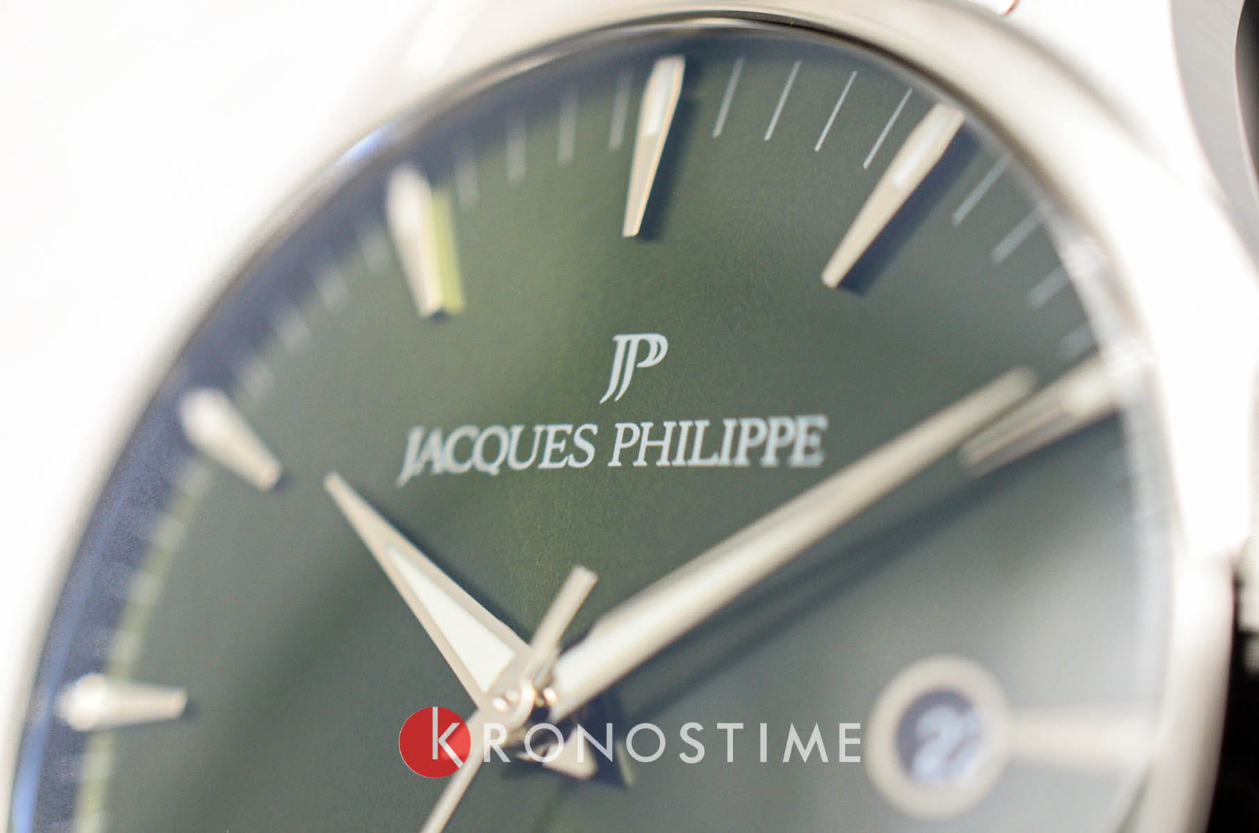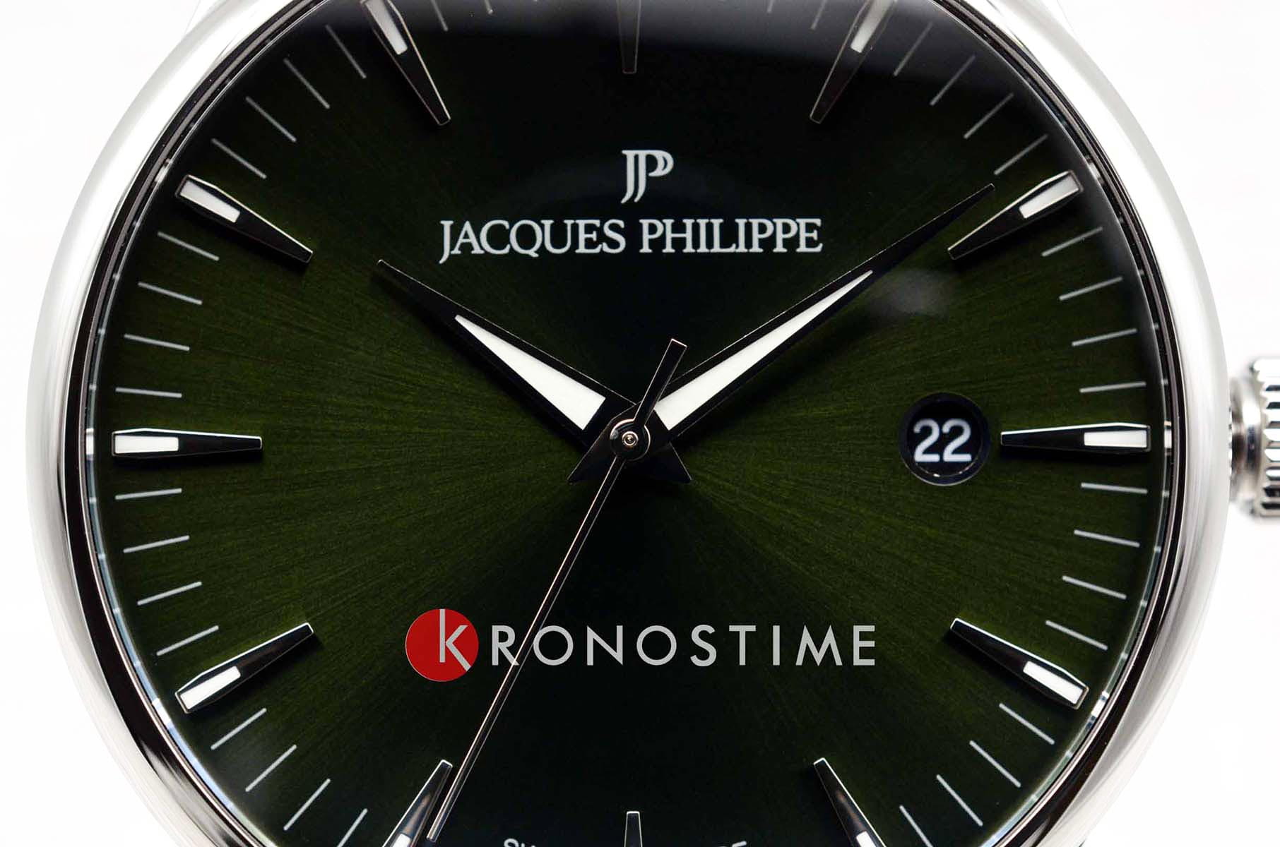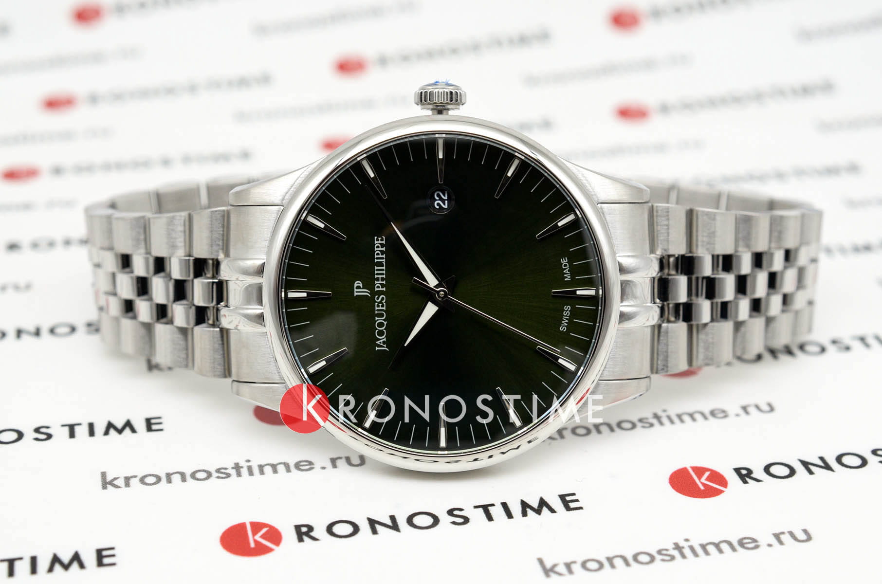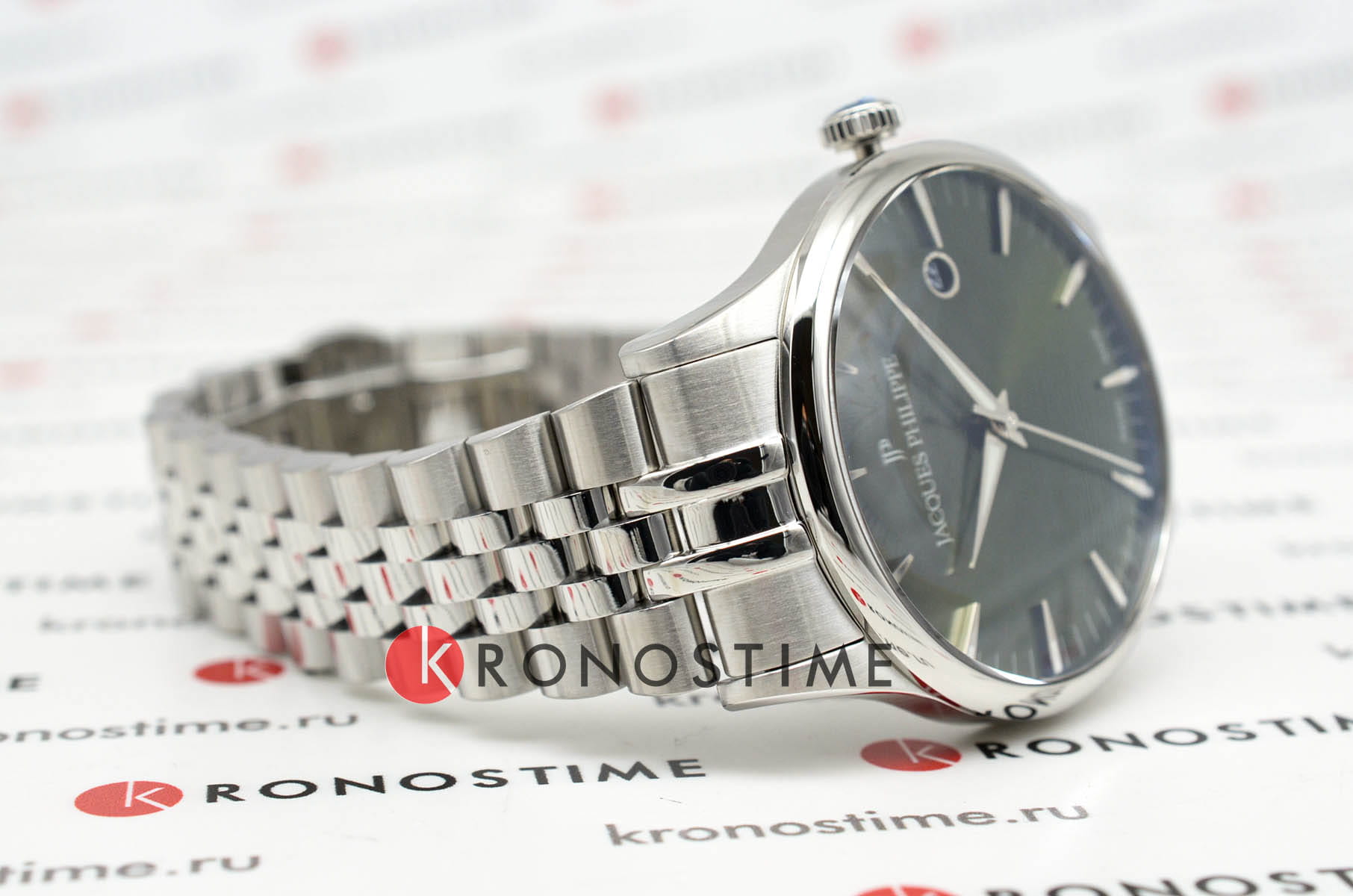 Jacques Philippe JPQGS6613X6 — стильные мужские часы в классическом формате с акцентом на надёжность и элегантность. Корпус круглой формы диаметром 40 мм из нержавеющей стали отличается утонченным силуэтом при толщине примерно 12 мм, обеспечивая комфорт при длительном ношении . Циферблат оформлен лаконично: тонкие стрелки и минималистичные часовые метки с люминесцентным покрытиемЛюминесцентное покрытиеПозволяет считывать показания времени в темноте. Производители наносят на стрелки, часовые индексы, безель или поверхность циферблата светонакопительный состав, дающий холодное свечение. подчёркивают строгий характер модели. Встроенная функция отображения даты придаёт часам практичность без лишнего визуального нагромождения. Поверхность защищает сапфировое стеклоСапфировое стеклоПрочный и надёжный материал из кристалла сапфира синтетического происхождения, характеризующийся особой твёрдостью и устойчивостью к царапинам и повреждениям. — устойчивое к царапинам и бликам. Внутри используется точный швейцарский кварцевый механизм, не требующий подзавода и сохраняющий стабильную работу без сложного обслуживания. Модель оснащена металлическим браслетом из нержавеющей стали в оттенке металлик‑серый на застёжке-бабочке с кнопкамиЗастёжка "бабочка"Такой вид застёжки дополняется предохранителями, помогающими избежать случайного раскрытия браслета. Обладают изящным исполнением. , ширина звеньев около 22 мм, что обеспечивает надёжную посадку и солидный внешний вид . Водозащита составляет до 5 ATM, — часы без проблем выдерживают случайный контакт с водой в повседневной эксплуатации . Jacques Philippe — гармоничное сочетание классического стиля, точного швейцарского кварца и практичности в одном надёжном аксессуаре.