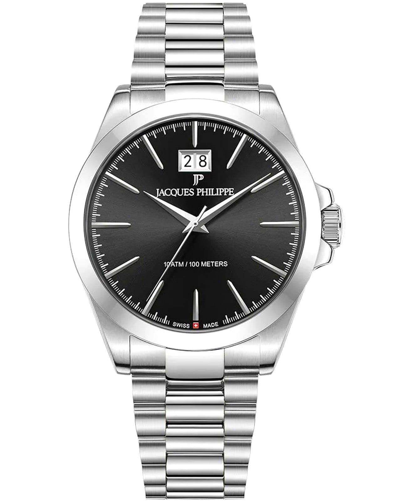Швейцарские мужские часы Jacques Philippe Ordo JPQGS841316 кварцевый механизм с высокой точностью. Прочное сапфировое стеклоСапфировое стеклоПрочный и надёжный материал из кристалла сапфира синтетического происхождения, характеризующийся особой твёрдостью и устойчивостью к царапинам и повреждениям. устойчивое к царапинам и механическим повреждениям. Циферблат черного цвета украшен классическими стрелками и метками гармонично дополняющие общий дизайн модели. Элегантный корпус изготовлен из нержавеющей стали, диаметром 39 мм, что делает их устойчивыми к внешним воздействиям и придает благородный вид. Стальной браслет на застёжке-бабочке с кнопкамиЗастёжка "бабочка"Такой вид застёжки дополняется предохранителями, помогающими избежать случайного раскрытия браслета. Обладают изящным исполнением. обеспечивает комфортное и безопасное ношение. Окошко даты находится в положении 12 часов. Класс водозащиты: 100 метров позволит плавать, нырять и заниматься другими водными видами спорта. Эти часы станут идеальным выбором для мужчин, ценящих стиль, качество и функциональность.