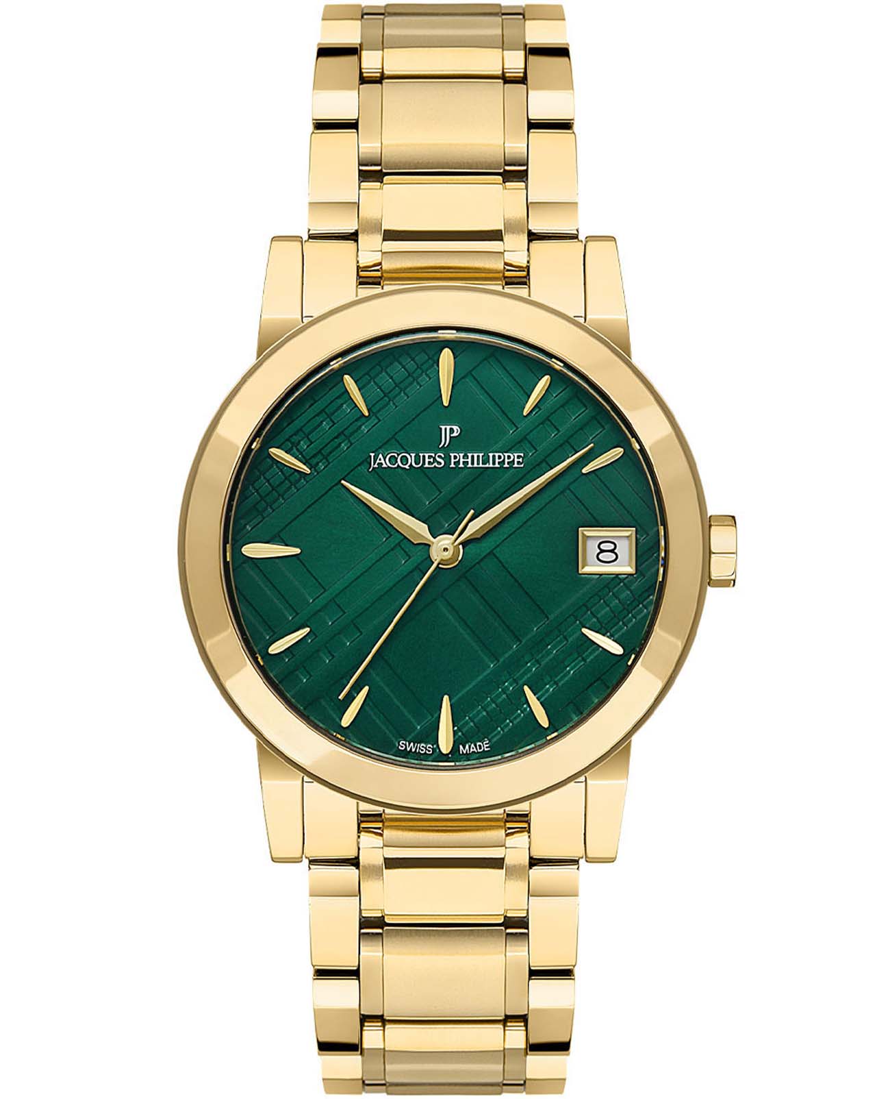 Швейцарские женские часы Jacques Philippe Principle JPQLS1623X4, кварцевый механизм с высокой точностью. Сапфировое стеклоСапфировое стеклоПрочный и надёжный материал из кристалла сапфира синтетического происхождения, характеризующийся особой твёрдостью и устойчивостью к царапинам и повреждениям. устойчивое к появлению царапин, обладающее высокой прозрачностью. Корпус и браслет часов изготовлены из нержавеющей стали с IP-покрытиемIP-покрытиеМетод ионного напыления. Демонстрирует повышенную устойчивость к истиранию, окислению и химическим веществам. Под воздействием высокого давления и температуры около 1500°C молекулы металла надёжно соединяются с частицами корпуса часов.. Класс водозащиты: 50 метров, позволит защитить корпус от случайных брызг или капель дождя. Стальной браслет на застёжке-бабочке с кнопкамиЗастёжка "бабочка"Такой вид застёжки дополняется предохранителями, помогающими избежать случайного раскрытия браслета. Обладают изящным исполнением. . Окошко даты находится в положении 3 часа.