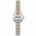Jacques Philippe JPQLS827388RG — женские часы в сдержанном классическом исполнении с акцентом на простоту и надёжность. Корпус диаметром 26 мм выполнен из нержавеющей стали — делает модель универсальной и комфортной в повседневной носке. Циферблат оформлен в светлом металлическом тоне с тонкими стрелками, лаконичными часовыми метками и аккуратным окошком даты в позиции «3 часа». Минималистичный стиль подчёркивает строгость и чистоту дизайна. Поверхность защищена устойчивым к царапинам сапфировым стекломСапфировое стеклоПрочный и надёжный материал из кристалла сапфира синтетического происхождения, характеризующийся особой твёрдостью и устойчивостью к царапинам и повреждениям., которое обеспечивает хорошую читаемость и долговечность. БезельБезельВнешний ободок, закрепляющий стекло. В спортивных часах так называется поворотное кольцо с делениями на циферблате, выполняет роль таймера – замеряет отрезки времени на шкале. Неподвижный безель – элемент декора. Однонаправленно вращающийся безель на дайверских часах позволяет фиксировать моменты погружения и выныривания на поверхность. с PVD-покрытиемPVDУльтратонкое покрытие наносится в технике вакуумного напыления, сочетает в себе нитрид титана особой прочности со слоем золота или оксида хрома. Несёт в себе декоративную или защитную функцию.. Механизм — точный швейцарский кварц, не требующий подзавода. Он обеспечивает стабильную и бесперебойную работу часов, сохраняя точность в любых условиях. Браслет из нержавеющей стали с PVD-покрытиемPVDУльтратонкое покрытие наносится в технике вакуумного напыления, сочетает в себе нитрид титана особой прочности со слоем золота или оксида хрома. Несёт в себе декоративную или защитную функцию. визуально продолжает корпус и фиксируется на застёжке-бабочке с кнопкамиЗастёжка "бабочка"Такой вид застёжки дополняется предохранителями, помогающими избежать случайного раскрытия браслета. Обладают изящным исполнением. , обеспечивая комфортную посадку. Водозащита до 10 ATM позволяет использовать часы не только в повседневной жизни, но и при активности на воде. Jacques Philippe — это надёжная и универсальная модель для тех, кто ценит швейцарскую точность, простоту и уверенный стиль без лишних деталей.