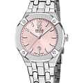 Женские швейцарские часы Jaguar Diplomatic Lady J1016/2. Кварцевый швейцарский калибр Ronda Harley 785. Сапфировое стеклоСапфировое стеклоПрочный и надёжный материал из кристалла сапфира синтетического происхождения, характеризующийся особой твёрдостью и устойчивостью к царапинам и повреждениям. устойчивое к мелким механическим повреждениям. Корпус и браслет часов изготовлены из нержавеющей стали. Стрелки и метки с люминесцентным покрытиемЛюминесцентное покрытиеПозволяет считывать показания времени в темноте. Производители наносят на стрелки, часовые индексы, безель или поверхность циферблата светонакопительный состав, дающий холодное свечение.. Окошко даты находится в положении 6 часов. Класс водозащиты: 100 метров, позволит плавать, нырять и заниматься другими водными видами спорта. Стальной браслет на раскладной застёжкеРаскладная застёжкаТакой тип застёжки используется только на браслетах из металла. Она никогда не раскрывается полностью, происходит разделение на 2 и более частей. Раскладывающая застёжка снизит вероятность потери часов к минимуму..