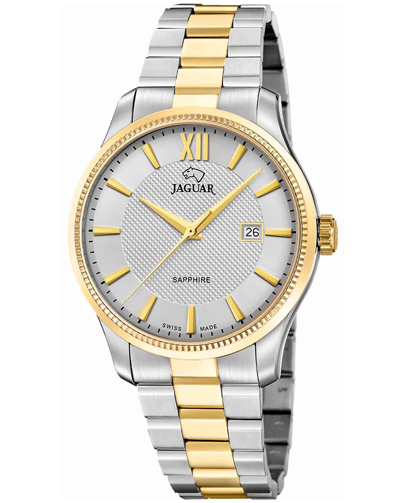 Часы Jaguar ESSENTIA J1043/1 - это воплощение элегантности и точности, созданное для современного мужчины. Эта швейцарская модель отличается изысканным дизайном и высоким качеством исполнения. Корпус часов выполнен из нержавеющей стали серебристого цвета, что придает им благородный и стильный вид. Циферблат защищен сапфировым стекломСапфировое стеклоПрочный и надёжный материал из кристалла сапфира синтетического происхождения, характеризующийся особой твёрдостью и устойчивостью к царапинам и повреждениям., которое славится своей прочностью и устойчивостью к царапинам, обеспечивая долговечность и безупречный внешний вид часов. Неподвижный золотистый безельБезельВнешний ободок, закрепляющий стекло. В спортивных часах так называется поворотное кольцо с делениями на циферблате, выполняет роль таймера – замеряет отрезки времени на шкале. Неподвижный безель – элемент декора. Однонаправленно вращающийся безель на дайверских часах позволяет фиксировать моменты погружения и выныривания на поверхность.. Браслет, также изготовленный из нержавеющей стали с золотистым PVD-покрытиемPVDУльтратонкое покрытие наносится в технике вакуумного напыления, сочетает в себе нитрид титана особой прочности со слоем золота или оксида хрома. Несёт в себе декоративную или защитную функцию., гармонично сочетается с корпусом, создавая целостный и утонченный образ. Диаметр корпуса составляет 40 мм, что делает часы идеальными для мужского запястья. Модель ESSENTIA J1043/1 оснащена швейцарским кварцевым механизмом, гарантирующим высокую точность хода, а также функцией отображения даты, что добавляет практичности этому стильному аксессуару. Часы Jaguar J1043/1- это не просто инструмент для измерения времени, но и статусный аксессуар, который подчеркнет безупречный вкус и уверенность своего владельца. Они идеально подойдут как для деловых встреч, так и для особых случаев, всегда оставаясь верным спутником современного мужчины, ценящего качество и стиль. Браслет имеет скрытую застёжку «бабочка» с кнопкамиЗастёжка "бабочка"Такой вид застёжки дополняется предохранителями, помогающими избежать случайного раскрытия браслета. Обладают изящным исполнением. .