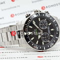Стрелки и метки, покрытые люминесцентным составомЛюминесцентное покрытиеПозволяет считывать показания времени в темноте. Производители наносят на стрелки, часовые индексы, безель или поверхность циферблата светонакопительный состав, дающий холодное свечение., позволяют легко считывать время даже в условиях недостаточной освещённости. Календарь расположен в положении «8 часов». Водозащита на уровне 200 метров открывает возможность заниматься водными видами спорта.