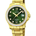 Женские швейцарские часы Jaguar Woman J895/2. Кварцевый швейцарский калибр Ronda 705. Сапфировое стеклоСапфировое стеклоПрочный и надёжный материал из кристалла сапфира синтетического происхождения, характеризующийся особой твёрдостью и устойчивостью к царапинам и повреждениям. устойчивое к мелким механическим повреждениям. Корпус и браслет часов изготовлены из нержавеющей стали с PVD-покрытиемPVDУльтратонкое покрытие наносится в технике вакуумного напыления, сочетает в себе нитрид титана особой прочности со слоем золота или оксида хрома. Несёт в себе декоративную или защитную функцию.. Стрелки с люминесцентным покрытиемЛюминесцентное покрытиеПозволяет считывать показания времени в темноте. Производители наносят на стрелки, часовые индексы, безель или поверхность циферблата светонакопительный состав, дающий холодное свечение.. Окошко даты находится в положении 3 часа. Класс водозащиты: 200 метров, позволит плавать, нырять и заниматься другими водными видами спорта. Стальной браслет с частичным PVD-покрытиемPVDУльтратонкое покрытие наносится в технике вакуумного напыления, сочетает в себе нитрид титана особой прочности со слоем золота или оксида хрома. Несёт в себе декоративную или защитную функцию. на раскладной застёжкеРаскладная застёжкаТакой тип застёжки используется только на браслетах из металла. Она никогда не раскрывается полностью, происходит разделение на 2 и более частей. Раскладывающая застёжка снизит вероятность потери часов к минимуму.. Циферблат украшен кристаллами в роли часовых индексов. БезельБезельВнешний ободок, закрепляющий стекло. В спортивных часах так называется поворотное кольцо с делениями на циферблате, выполняет роль таймера – замеряет отрезки времени на шкале. Неподвижный безель – элемент декора. Однонаправленно вращающийся безель на дайверских часах позволяет фиксировать моменты погружения и выныривания на поверхность. с PVD-покрытиемPVDУльтратонкое покрытие наносится в технике вакуумного напыления, сочетает в себе нитрид титана особой прочности со слоем золота или оксида хрома. Несёт в себе декоративную или защитную функцию. инкрустирован кристаллами.