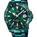 Мужские швейцарские часы Jaguar Executive Diver J988/1. Кварцевый швейцарский калибр Ronda 6003D. Сапфировое стеклоСапфировое стеклоПрочный и надёжный материал из кристалла сапфира синтетического происхождения, характеризующийся особой твёрдостью и устойчивостью к царапинам и повреждениям. устойчивое к мелким механическим повреждениям. Корпус и браслет часов изготовлены из нержавеющей стали с PVD-покрытиемPVDУльтратонкое покрытие наносится в технике вакуумного напыления, сочетает в себе нитрид титана особой прочности со слоем золота или оксида хрома. Несёт в себе декоративную или защитную функцию.. Стрелки и метки с люминесцентным покрытиемЛюминесцентное покрытиеПозволяет считывать показания времени в темноте. Производители наносят на стрелки, часовые индексы, безель или поверхность циферблата светонакопительный состав, дающий холодное свечение.. Окошко даты находится в положении 3 часа. Класс водозащиты: 200 метров, позволит плавать, нырять и заниматься другими водными видами спорта. Стальной браслет на раскладной застёжкеРаскладная застёжкаТакой тип застёжки используется только на браслетах из металла. Она никогда не раскрывается полностью, происходит разделение на 2 и более частей. Раскладывающая застёжка снизит вероятность потери часов к минимуму.. БезельБезельВнешний ободок, закрепляющий стекло. В спортивных часах так называется поворотное кольцо с делениями на циферблате, выполняет роль таймера – замеряет отрезки времени на шкале. Неподвижный безель – элемент декора. Однонаправленно вращающийся безель на дайверских часах позволяет фиксировать моменты погружения и выныривания на поверхность. с PVD-покрытиемPVDУльтратонкое покрытие наносится в технике вакуумного напыления, сочетает в себе нитрид титана особой прочности со слоем золота или оксида хрома. Несёт в себе декоративную или защитную функцию..