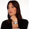Женские элегантные часы Karl Lagerfeld Round Essentials R0553101510, кварцевый механизм с высокой точностью. Минеральное стеклоМинеральное стеклоМинеральное стекло представляет собой искусственно выращенный минерал кварца. Такое стекло отличается особой устойчивостью к повреждениям и царапинам. Уступает по некоторым качествам сапфировому стеклу. устойчивое к появлению царапин, обладающее высокой прозрачностью. Изысканный корпус изготовлен из нержавеющей стали. Лаконичные центральные часовая, минутная и секундная стрелки. Водонепроницаемость 5 АТМ позволяет использовать часы в повседневных условиях — при мытье рук или под лёгким дождём. Стальной браслет c раскладной застёжкойРаскладная застёжкаТакой тип застёжки используется только на браслетах из металла. Она никогда не раскрывается полностью, происходит разделение на 2 и более частей. Раскладывающая застёжка снизит вероятность потери часов к минимуму., обеспечивающей комфорт и уверенную фиксацию на запястье, а также добавляя завершающий штрих к этому стильному аксессуару. Стрелки оснащены люминесцентным покрытиемЛюминесцентное покрытиеПозволяет считывать показания времени в темноте. Производители наносят на стрелки, часовые индексы, безель или поверхность циферблата светонакопительный состав, дающий холодное свечение., обеспечивающим хорошую читаемость в темноте. Циферблат и безельБезельВнешний ободок, закрепляющий стекло. В спортивных часах так называется поворотное кольцо с делениями на циферблате, выполняет роль таймера – замеряет отрезки времени на шкале. Неподвижный безель – элемент декора. Однонаправленно вращающийся безель на дайверских часах позволяет фиксировать моменты погружения и выныривания на поверхность. с кристаллами подчёркивают изысканный характер часов, создавая универсальный образ, подходящий как для повседневных ситуаций, так и для особых случаев. Аккуратное окошко даты на отметке «3 часов».