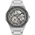 Мужские механические часы с автоподзаводом Kenneth Cole KCWGY0058903 — это стильный и современный аксессуар с выразительным дизайном. Корпус размером 42 мм выполнен из нержавеющей стали, безель с IP-покрытиемIP-покрытиеМетод ионного напыления. Демонстрирует повышенную устойчивость к истиранию, окислению и химическим веществам. Под воздействием высокого давления и температуры около 1500°C молекулы металла надёжно соединяются с частицами корпуса часов. серого цвета. Циферблат серого цвета частично скелетонизирован, что позволяет наблюдать за работой механизма. Циферблат защищён минеральным стекломМинеральное стеклоМинеральное стекло представляет собой искусственно выращенный минерал кварца. Такое стекло отличается особой устойчивостью к повреждениям и царапинам. Уступает по некоторым качествам сапфировому стеклу. и оформлен метками в виде штрихов. Часы оснащены стальным браслетом с раскладной застёжкойРаскладная застёжкаТакой тип застёжки используется только на браслетах из металла. Она никогда не раскрывается полностью, происходит разделение на 2 и более частей. Раскладывающая застёжка снизит вероятность потери часов к минимуму.. Водонепроницаемость 50 м позволяет использовать часы для плавания и повседневного ношения.
