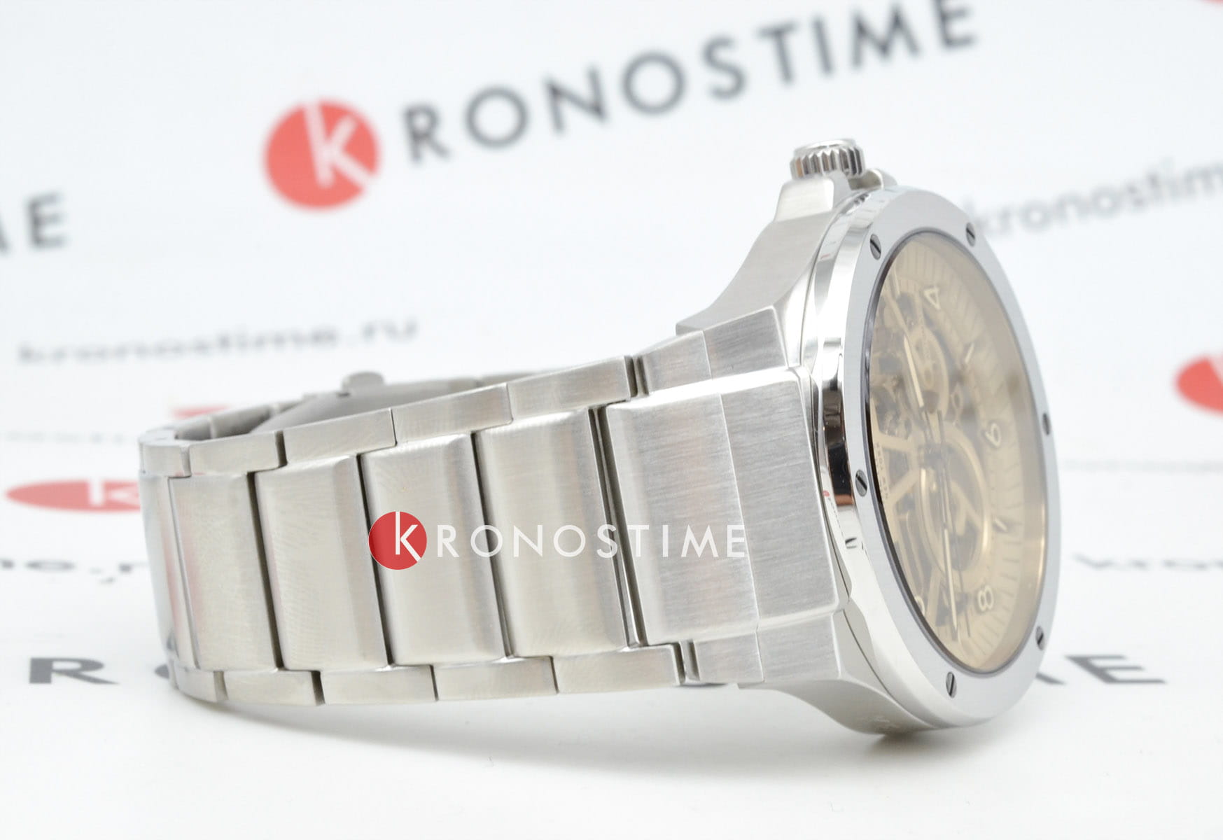 Мужские механические часы с автоподзаводом Kenneth Cole KCWGY0063302 — это стильный и современный аксессуар с выразительным дизайном. Корпус размером 42 мм выполнен из нержавеющей стали. Циферблат бежевого цвета частично скелетонизирован, что позволяет наблюдать за работой механизма. Циферблат защищён минеральным стекломМинеральное стеклоМинеральное стекло представляет собой искусственно выращенный минерал кварца. Такое стекло отличается особой устойчивостью к повреждениям и царапинам. Уступает по некоторым качествам сапфировому стеклу., оснащён люминесцентным покрытиемЛюминесцентное покрытиеПозволяет считывать показания времени в темноте. Производители наносят на стрелки, часовые индексы, безель или поверхность циферблата светонакопительный состав, дающий холодное свечение. и оформлен метками в виде штрихов. Часы оснащены стальным браслетом с раскладной застёжкойРаскладная застёжкаТакой тип застёжки используется только на браслетах из металла. Она никогда не раскрывается полностью, происходит разделение на 2 и более частей. Раскладывающая застёжка снизит вероятность потери часов к минимуму.. Водонепроницаемость 50 м позволяет использовать часы для плавания и повседневного ношения. Подойдёт для любого образа.